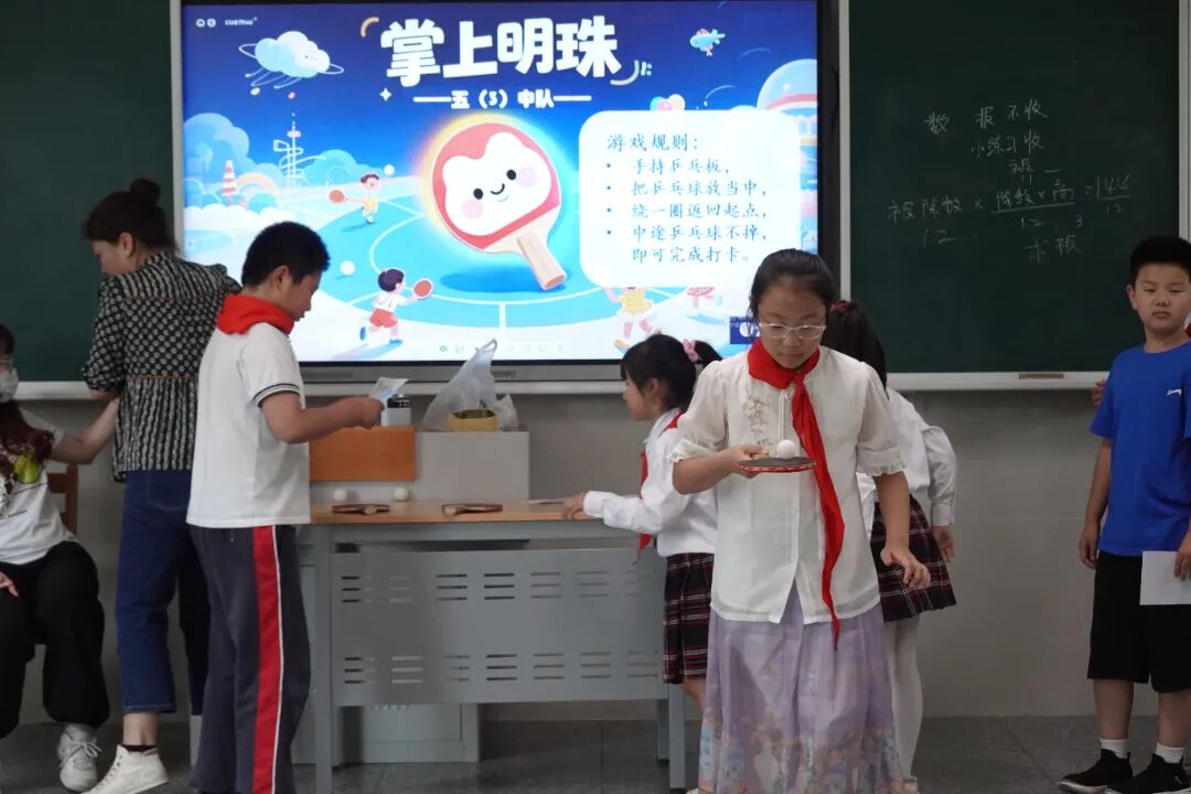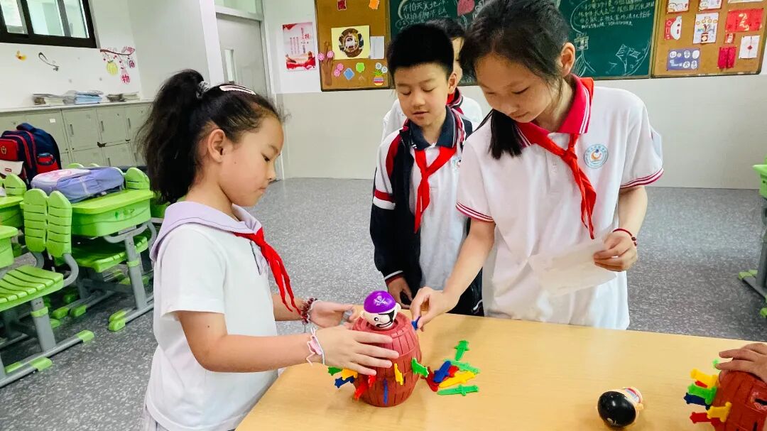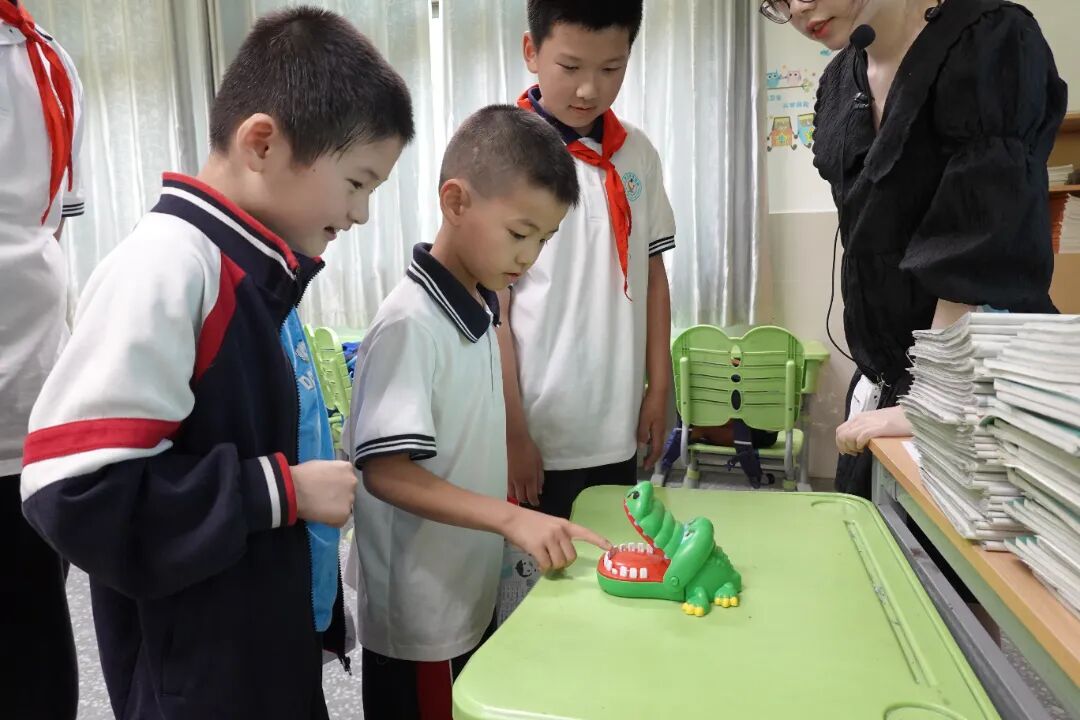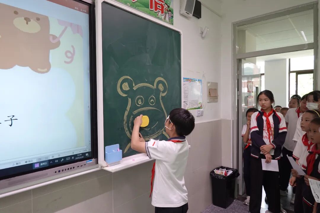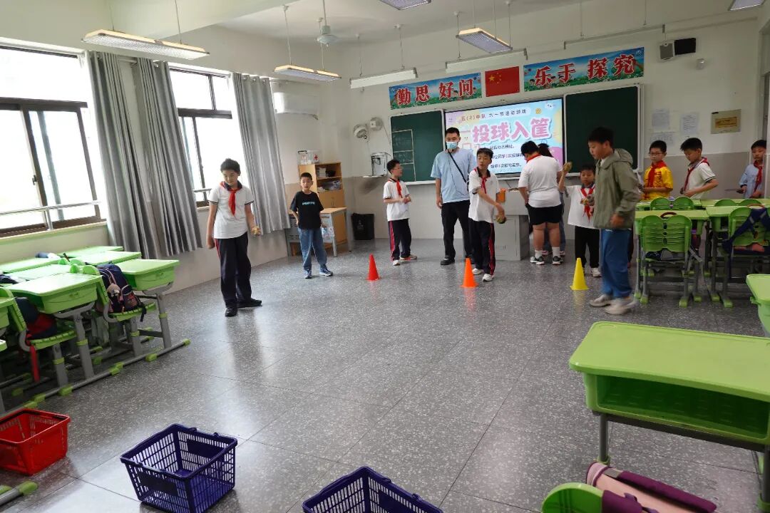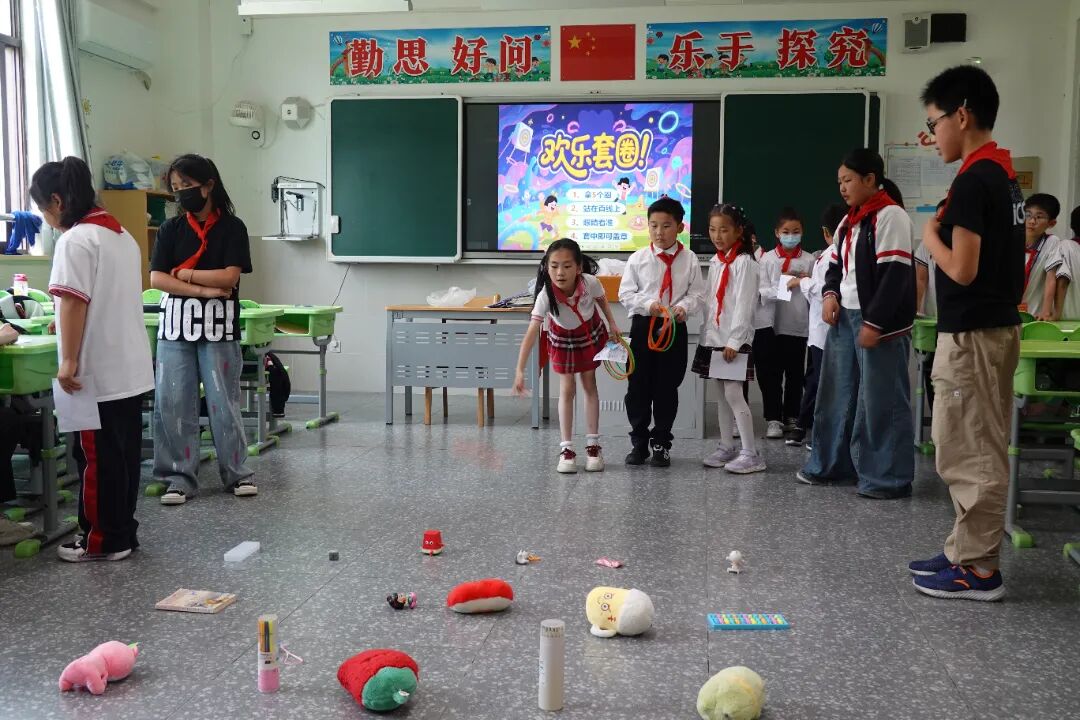 全校24间教室化身趣味乐园,学生们通过闯关集章的方式欢度儿童节。活动当天,各年级教师结合学生年龄特点,设计了“看字说颜色”“投球入筐”“翻滚吧乒乓球”“投掷磁力飞镖”等涵盖益智、运动、协作三大类的24项特色游戏。学生们手持集章卡穿梭于各个教室,每完成一项挑战即可获得专属印章。