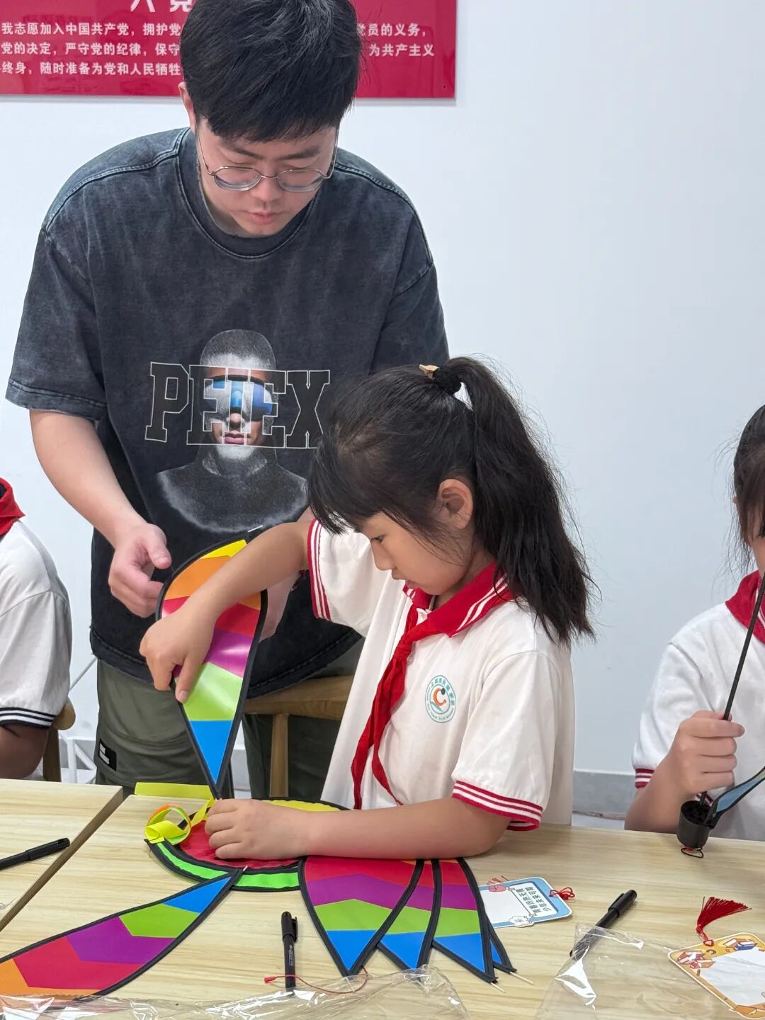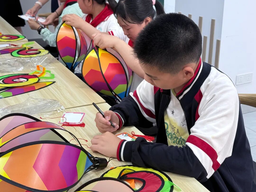 同学们听从社工老师的安排,体验制作灯笼和包粽子的活动。
