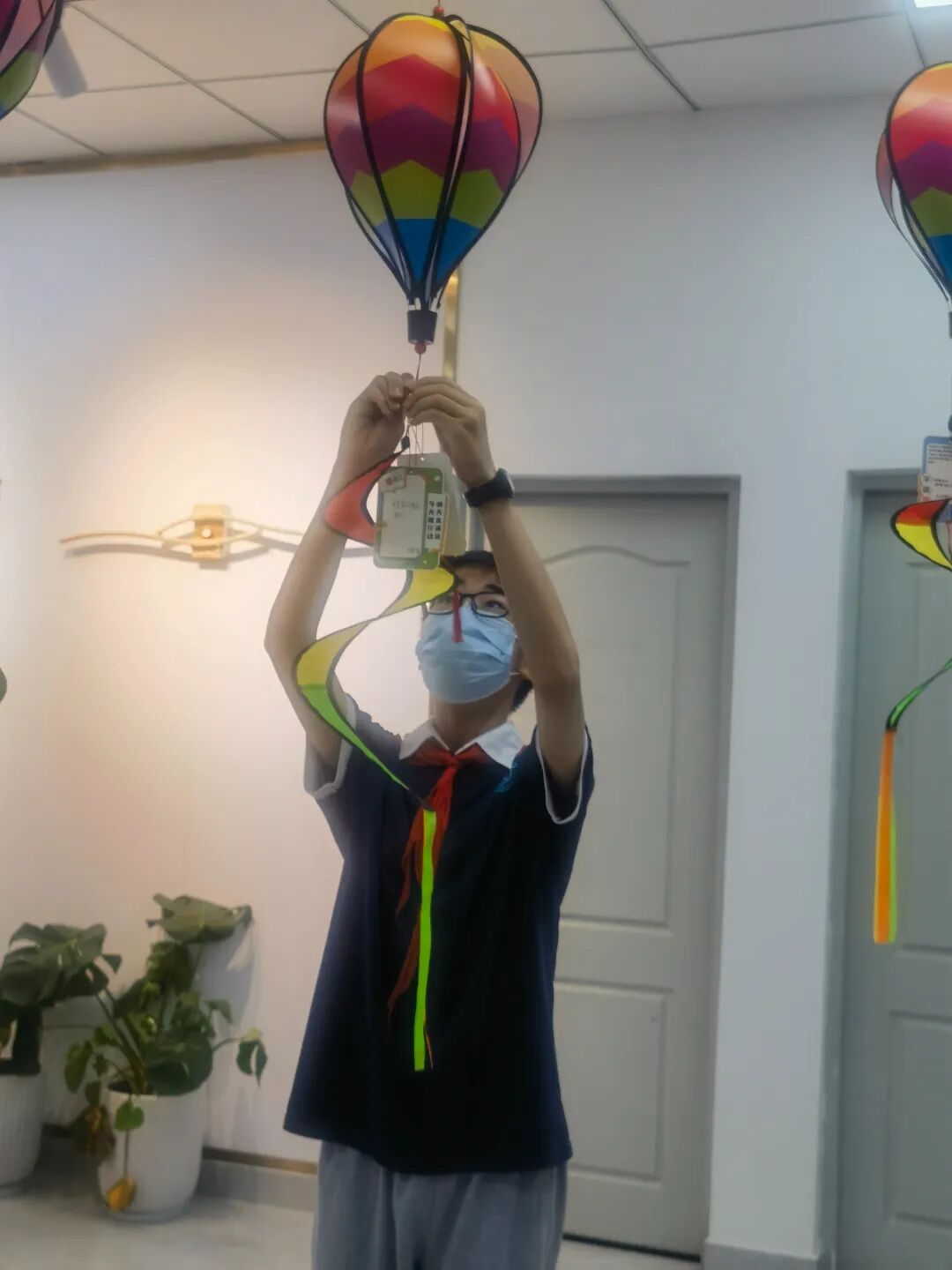 社工老师给大家讲解了制作灯笼的步骤。在仔细聆听后,有的同学迅速进入角色,熟练地折叠起来;有的在老师的帮助下,一步步掌握制作。不一会儿,同学们的手中都提起一盏盏色彩艳丽的灯笼。