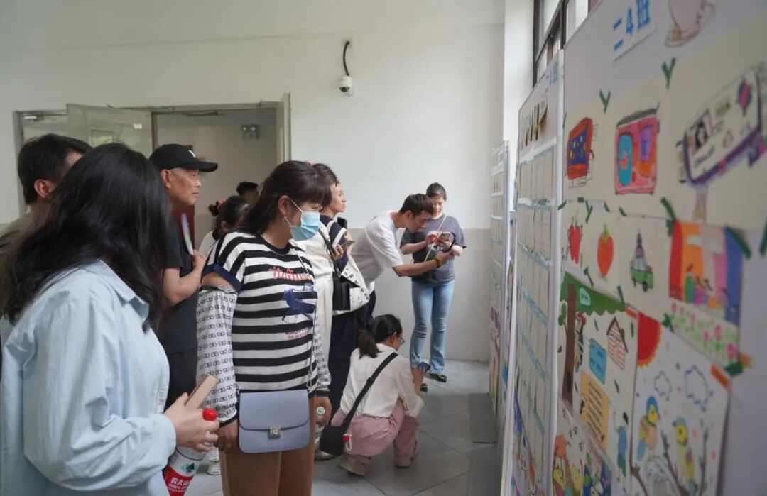 活动伊始,家长们来到教学楼连廊,欣赏二年级各班精心布置的各学科作品展。一幅幅工整的书写、一篇篇充满童趣的作品……孩子们的作品形式多样,内容丰富多彩,引得家长们驻足赞叹,纷纷用手机记录下这些珍贵的成长印记。