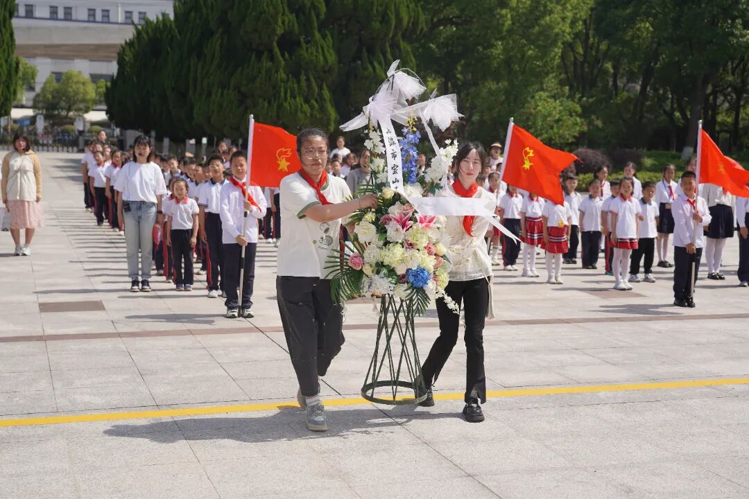 入队仪式正式开始之前,新队员们踏上了追寻先烈足迹的沉浸式学习之旅。他们迈着整齐的步伐来到广场仪式区,向革命烈士敬献花篮。新队员们表达对烈士们深深的怀念,铭记他们为国家、为人民所付出的巨大贡献。
