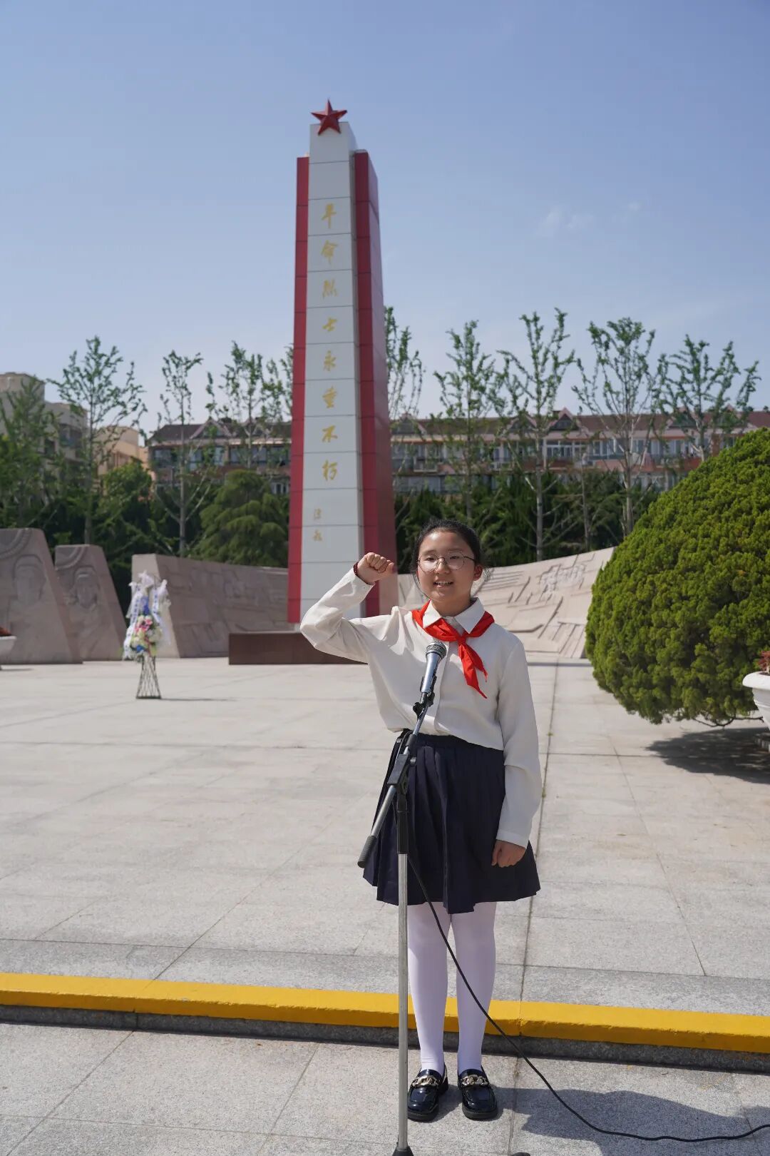 为进一步弘扬中国少年先锋队的光荣传统,增强少先队组织的力量,促进红领巾事业的蓬勃发展,上海市宝山区天馨学校于2025年5月19日下午在宝山区烈士陵园隆重举行了“红领巾爱祖国 争做新时代好队员”入队仪式。此次活动不仅标志着二年级学生正式成为中国少年先锋队的一员,更是他们迈向成长新阶段的起点。