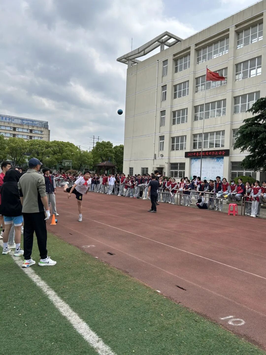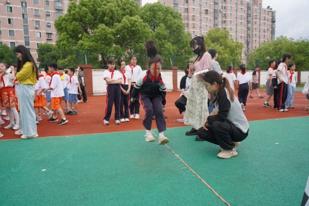 立定跳远区域,选手们助跑、腾空、落地,沙坑中深浅不一的脚印,记录着他们一次次超越自我的瞬间。实心球比赛现场,孩子们紧握实心球,屏气凝神,奋力一掷,在空中划出的弧线,承载着勇气与力量。