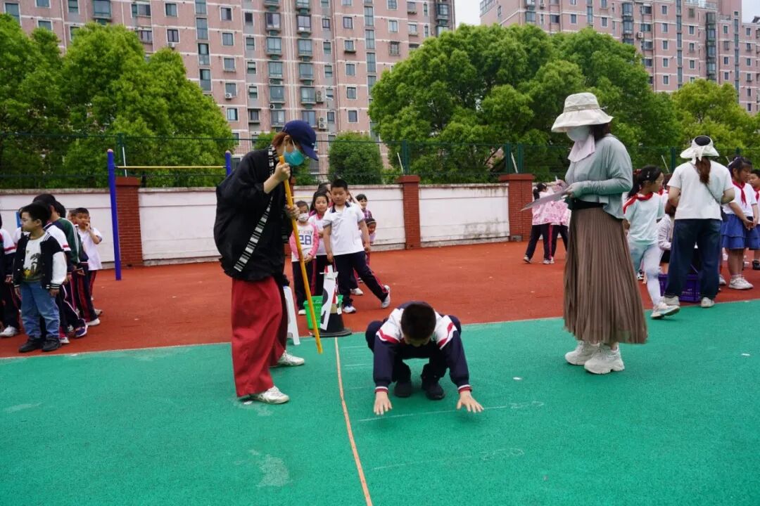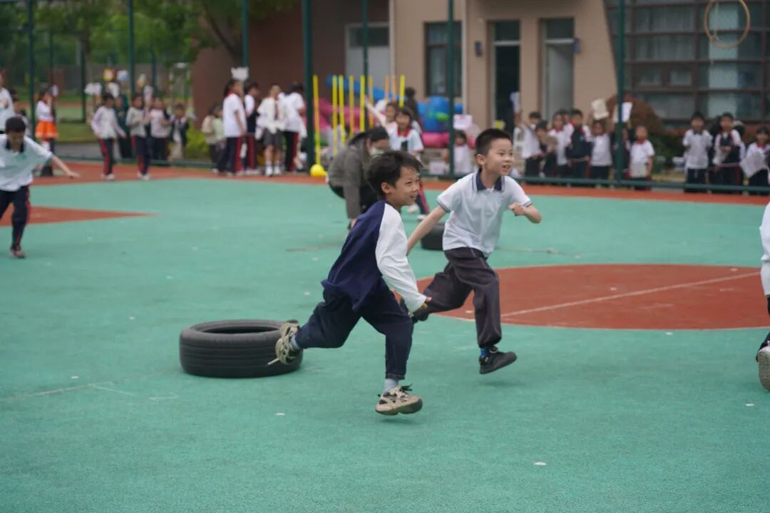 拖轮胎接力赛最具挑战,孩子们咬着牙、弓着背,拖着轮胎奋力向前,即使脚步踉跄,也依然坚持到底,摔倒后迅速爬起的身影,让人忍不住为他们的坚韧点赞。