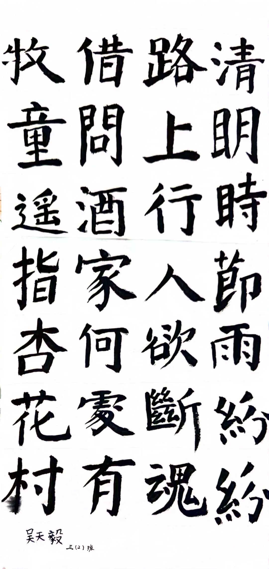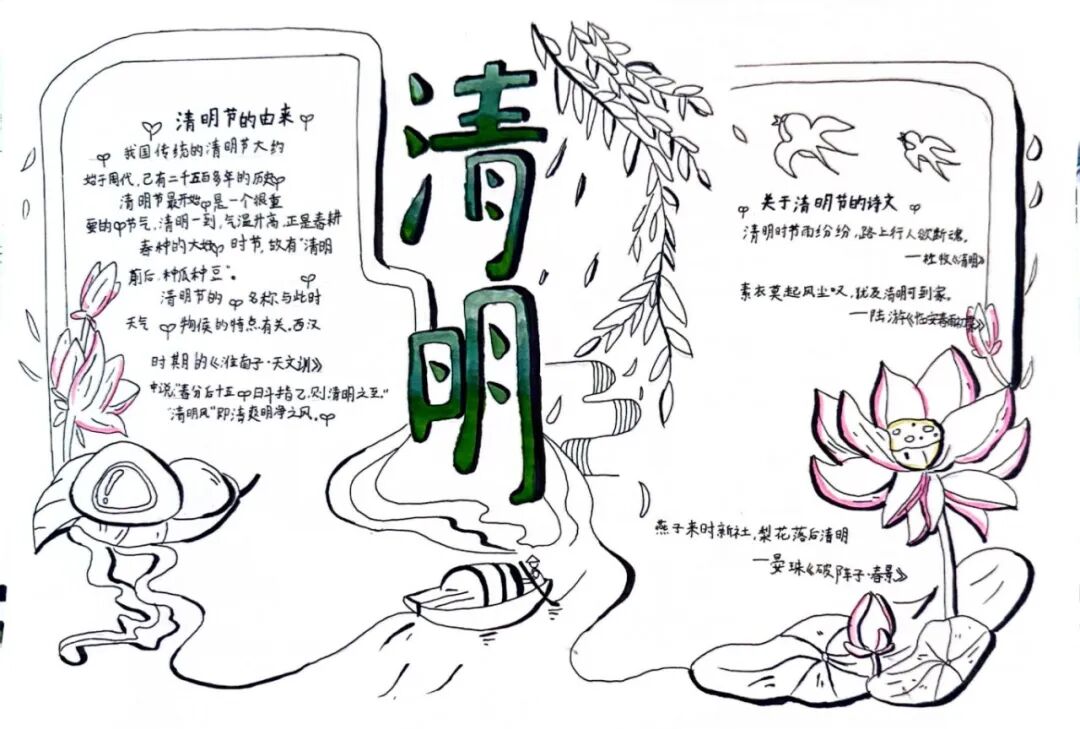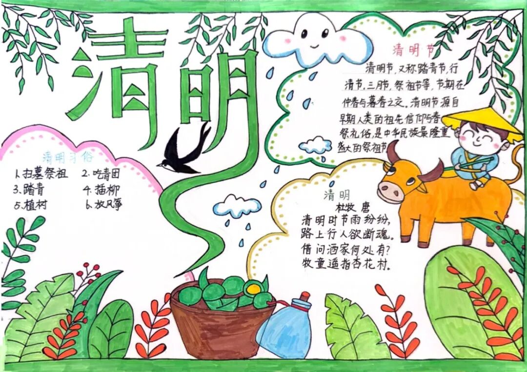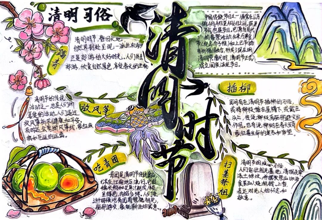 三年级队员们在书画创作环节中纷纷提笔挥毫。有的以“清明雨景”“春柳踏青”为主题,绘制清新淡雅的水墨画,展现清明时节的自然之美;有的书写《清明》古诗,一横一竖间尽显对传统文化的热爱;有的用图文并茂的形式介绍清明习俗,传递文明祭扫、绿色清明的理念。