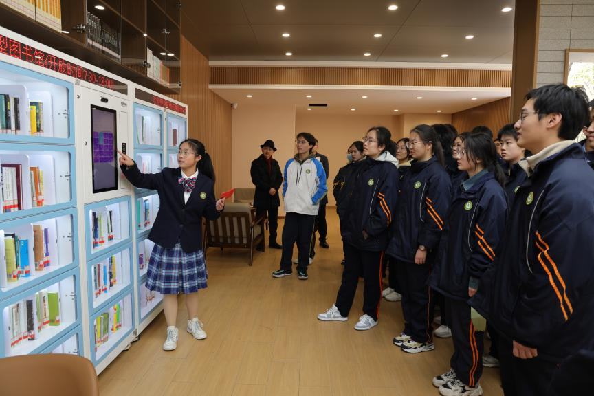 作为一个传统与现代相交织的自然式学习交流场所,源清书舍中的智慧书柜吸引着学生们的目光,它巧妙地融入了科技元素,更加便捷借阅书籍。在了解使用方法后,同学们踊跃尝试借阅书籍
