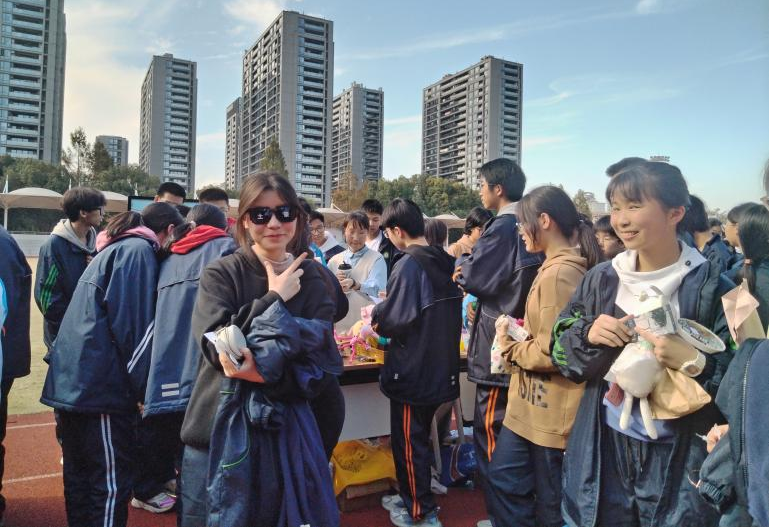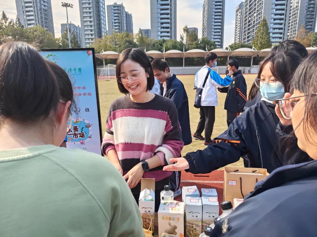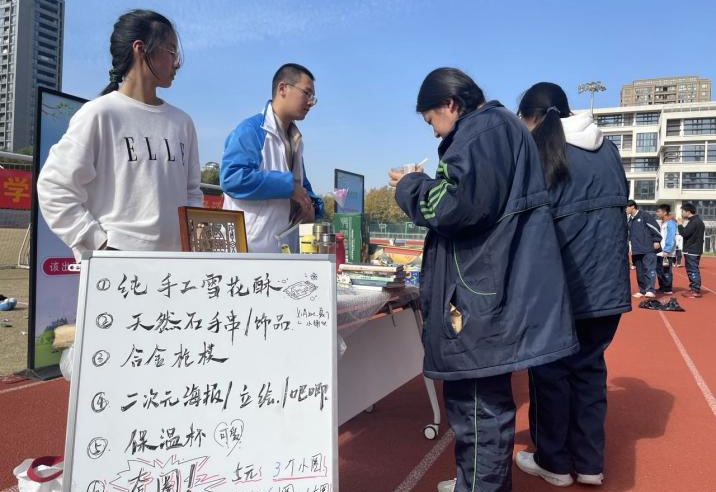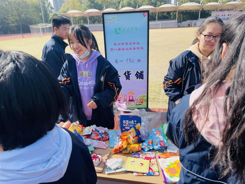 我怀揣着激动的心,兴致盎然地跑到操场上,没成想这里早已是人山人海,远远地望去,卖艺的、卖花的、甚至还有卖盲盒的。回到自己的小摊上,听着同伴们的吆喝声,内心对此次义卖的兴奋已然达到顶峰。冬日的暖阳照耀着热闹的集市,气温也随着爱心义卖的进程逐渐升温,我也认识到“爱”真的可以升温。同学们在义卖中分享喜悦,更在义卖中传递爱心,让源小清的心同新疆阿克苏同学们紧紧联系在一起……