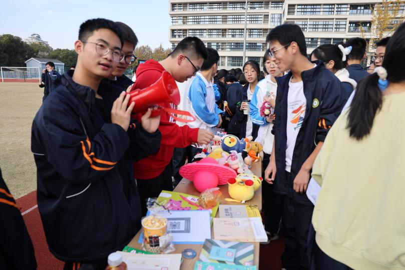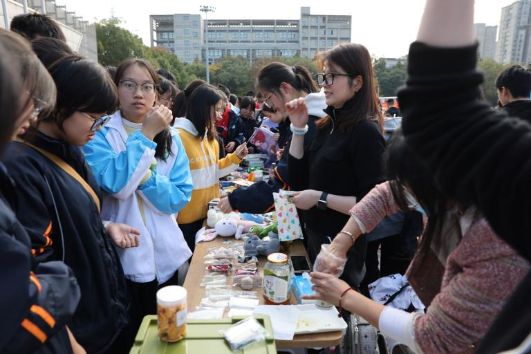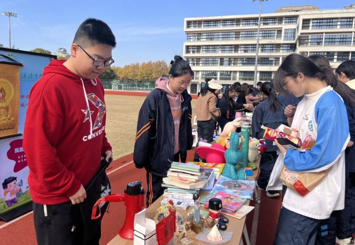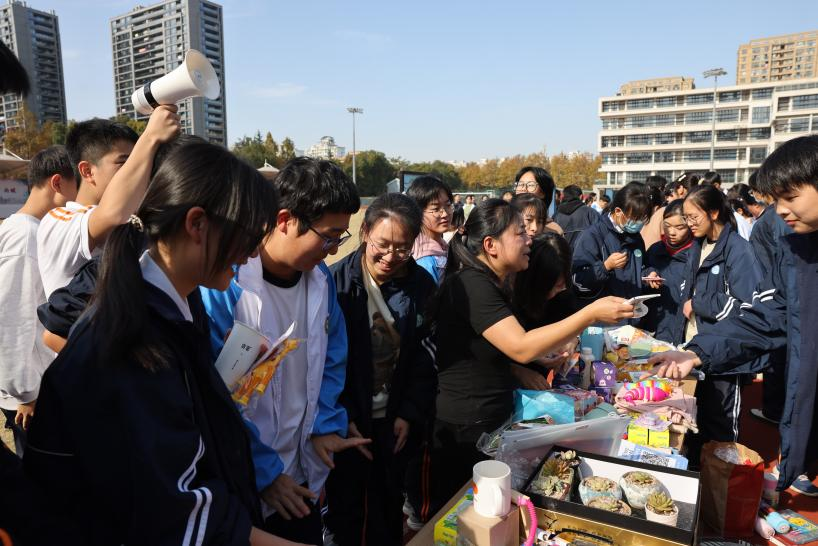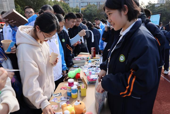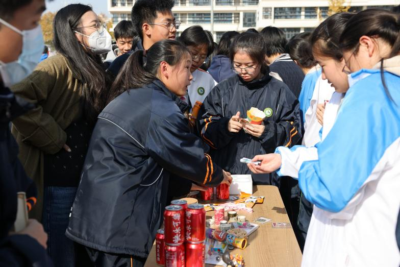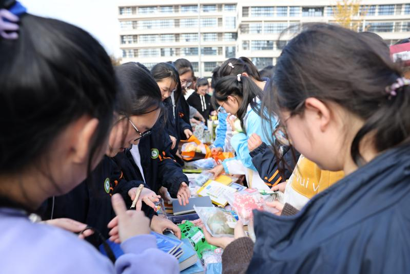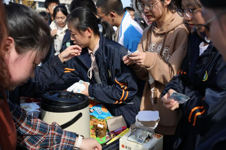 短暂的义卖结束,每个人心中都充满回忆的画面,鲜花、点心、人群……体验买卖的乐趣,享受空闲的时光,所到之处,皆是欢声笑语。同学们买到了心仪的物品,得到了快乐和放松,人们都在享受这暖洋洋的中午。蓝天、暖阳、呼唤,交织于一体,给予倦鸟一处歇息的枝条,再以振翅高飞。同时,在远方,我们的目光也是同样热切真诚,充满着希望,守望的精神,从此无疆。