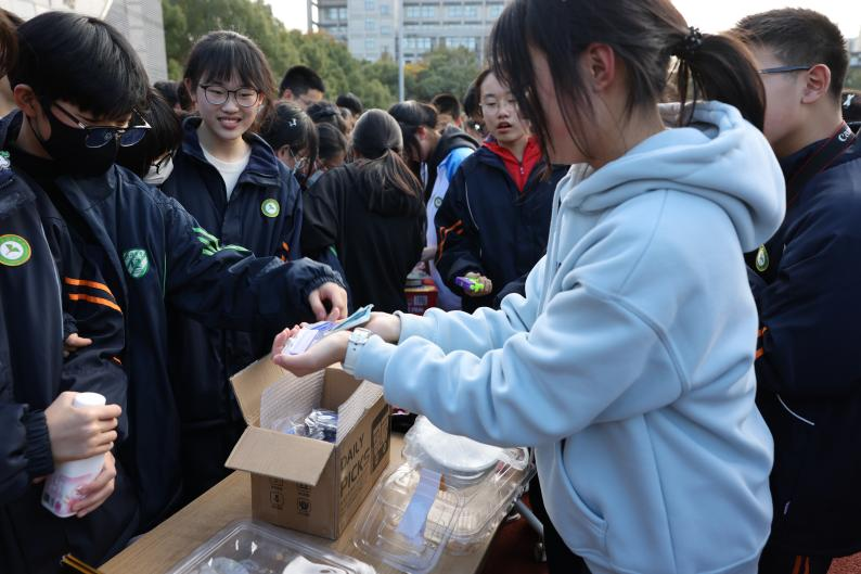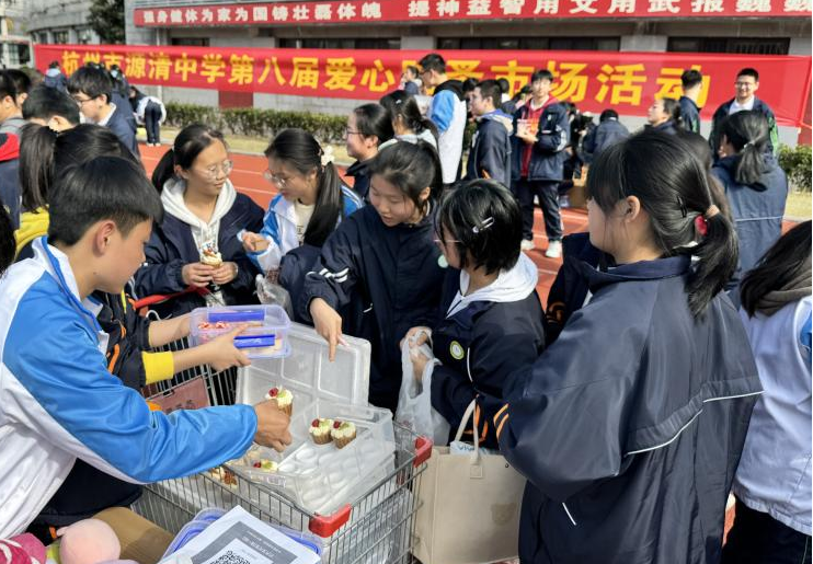阳光洒在操场,风吹落叶,只听得少年笑语。虽天气寒冷,但源清的温度在这次义卖活动中传递。我既是卖家,亦是买家,寻常的交易能锻炼自己的社交能力、磨练自己的口才。当我意识到所有金额全部捐赠给新疆阿克苏贫困地区的学生时,甚慰之。源清大爱的风在这个烈日当午的爱心义卖中吹到了阿克苏。你听,风中有着源清的爱心和善意。