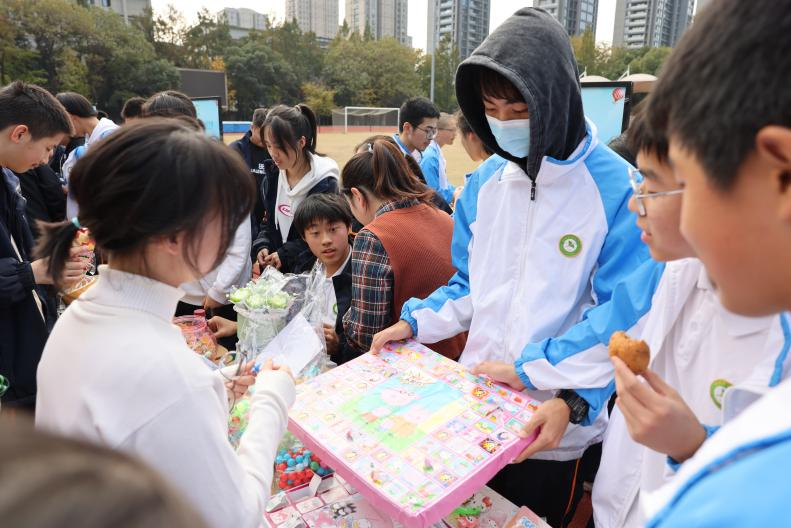 这次的义卖活动甚是热闹,中午一下课,操场就已挤满了人。老师们也积极参与进来,不仅限于买东西,王权老师还在同学们的期待声中吹奏了一曲,更有不少同学将自己购买的物品赠予老师们,义卖中洋溢着浓厚的师生情。各班班主任也都很卖力,早早来到摊位协助同学们布置。义卖的热心、温情,一同随着那募集的善款,捐赠于需要的人。赠人玫瑰,手留余香。