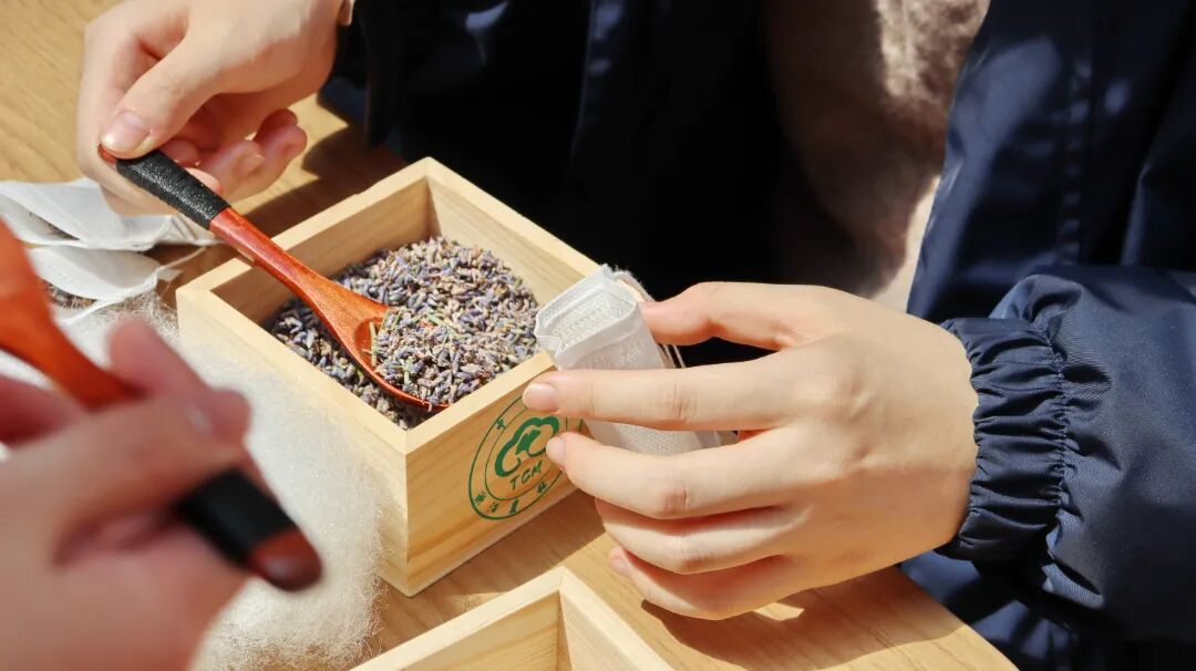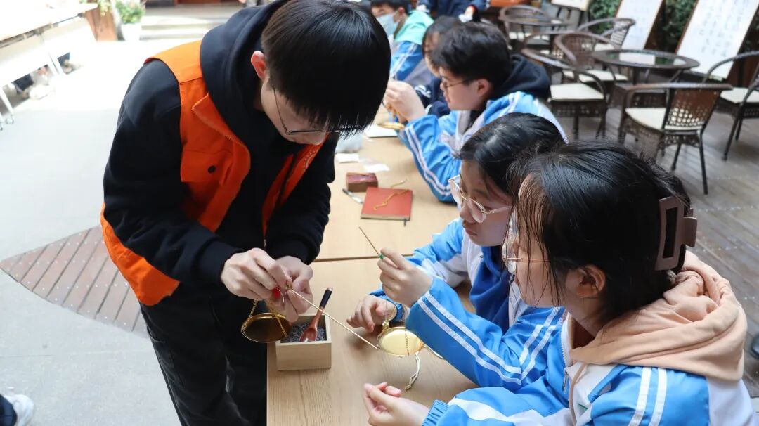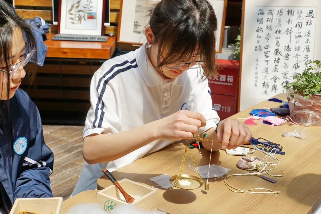 手工制作香囊,妙趣横生,是一次前所未有的体验。在专业的指导下,同学们都做出了别具一格又祝福满满的香囊。