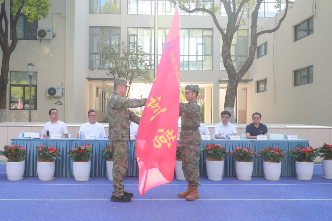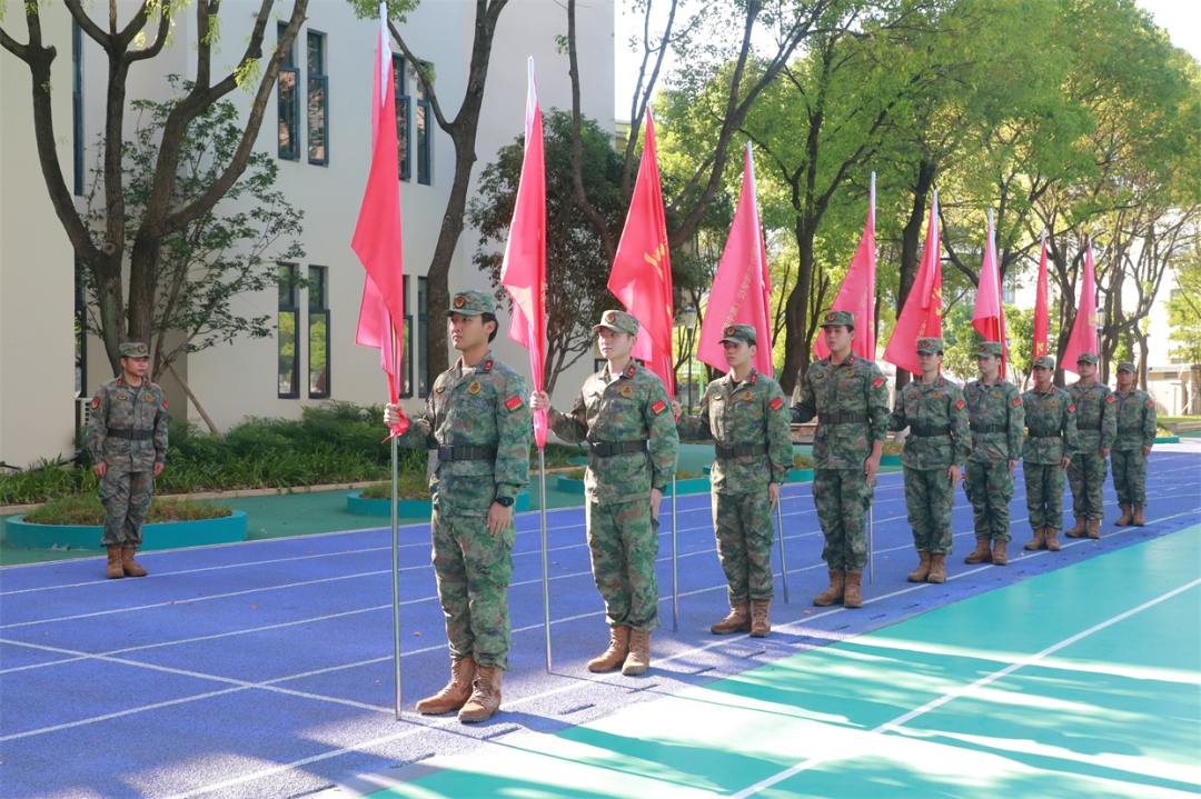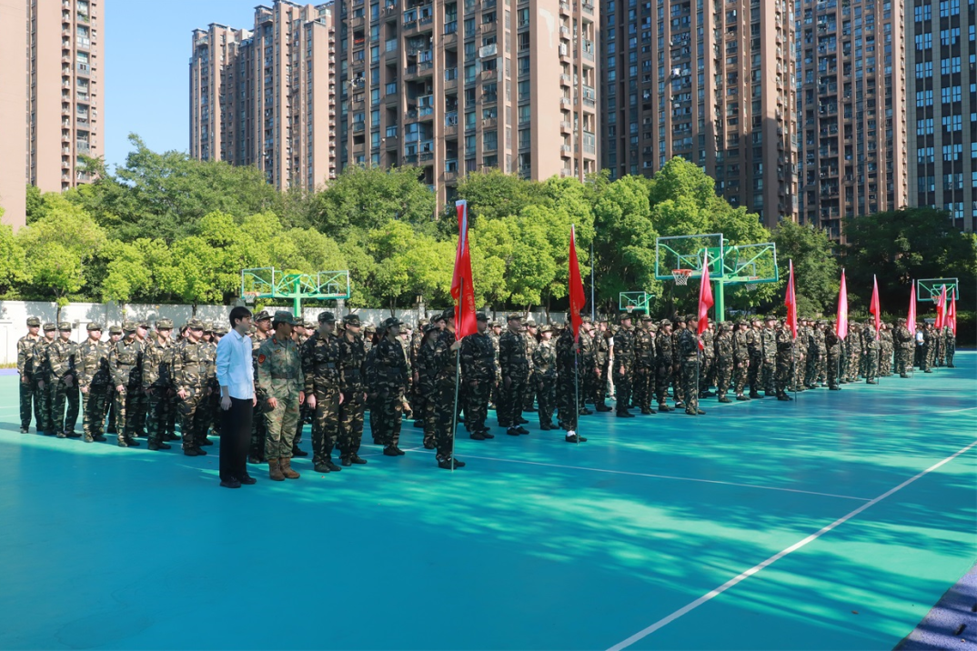 8月19日上午8时,杭州市实验外国语学校高中部智格校区操场上战歌嘹亮,2025级新生军训开营仪式震撼启幕!300余名新生以挺拔之姿,迎来高中生涯第一堂“热血必修课”!钱塘区人武部王雷、军训总教官罗大还等出席开营仪式。
