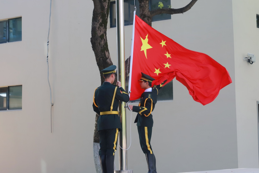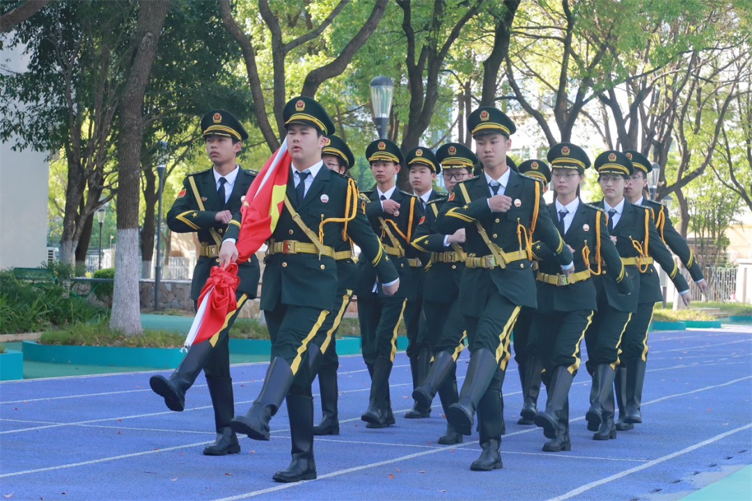 在肃穆的注目礼中,国旗护卫队踏着正步铿锵入场。鲜艳的五星红旗映照少年赤子心,家国情怀在此刻深植!