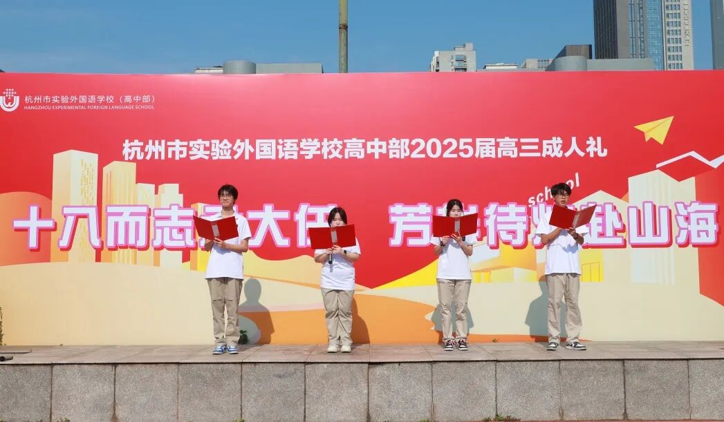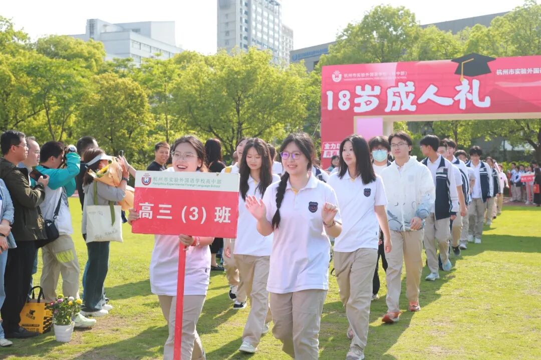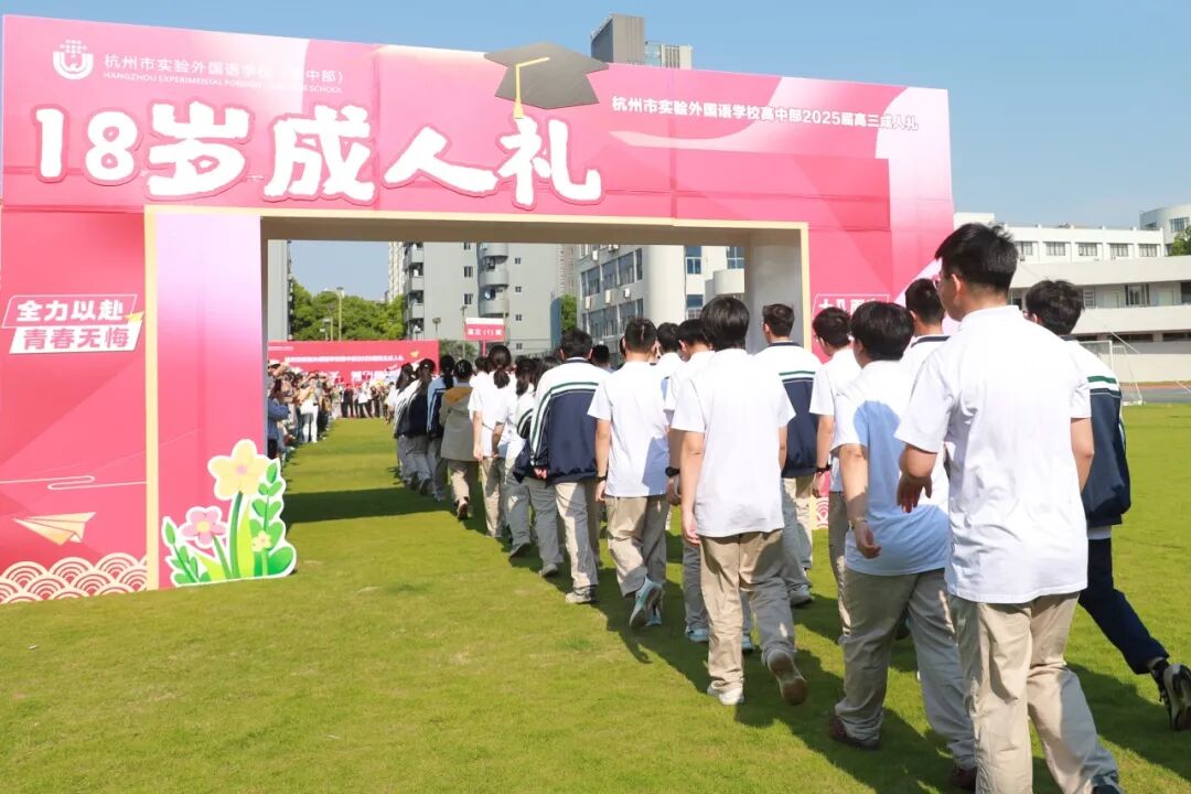 5月11日上午,杭州市实验外国语学校高中部高三年级全体师生及家长代表共400余人齐聚操场,共同见证以“十八而志承大任,芳华待灼赴山海”为主题的2025届成人礼仪式。庄重的仪式、深刻的嘱托与温情的互动,引导同学们感悟成人的责任与担当,扣好人生第一粒“思想扣子”。