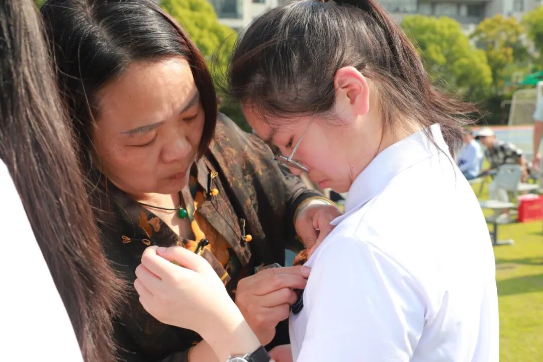 现场,老师、家长们为高三学子佩戴成人徽章。金属徽章折射的微光与"十八而志 青春万岁"的灼灼标语交相辉映。当一枚枚徽章别上衣襟,意味着成年的学子从此刻起要担当家国的责任。