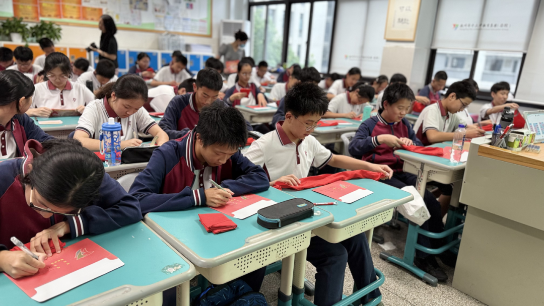 离队宣誓完毕,队员们缓缓摘下胸前飘扬的红领巾,将红领巾仔细折叠,抚平褶皱,小心翼翼地放入红色信封中。这一刻,时间仿佛静止,许多队员眼眶泛红,眼中满是不舍,他们用这样的方式,将红领巾承载的美好回忆与光荣使命永久封存,让这份珍贵的少先队员记忆成为青春路上最温暖的底色。