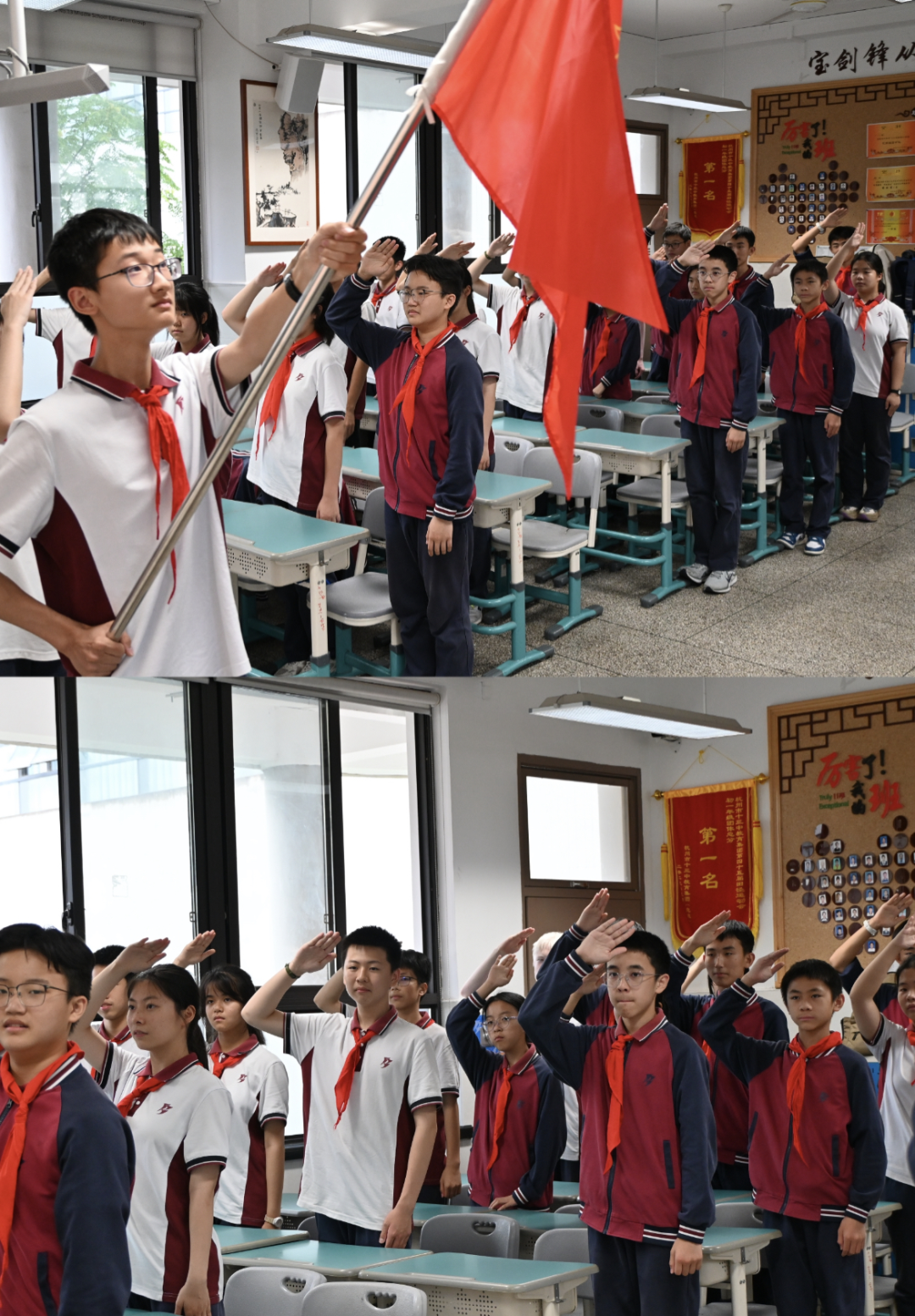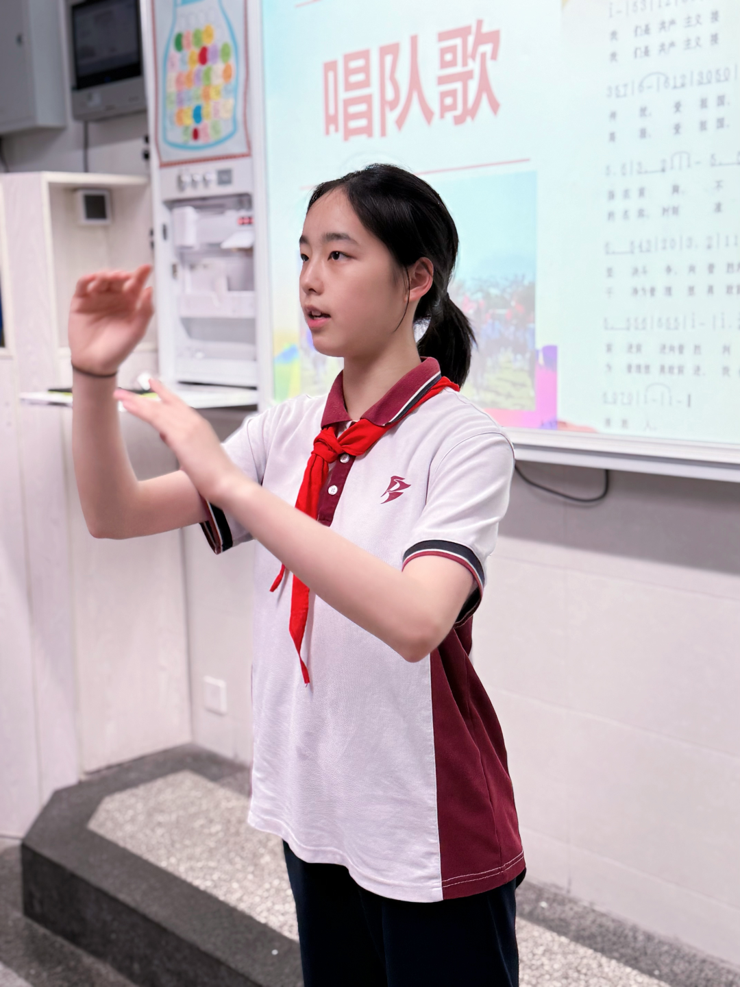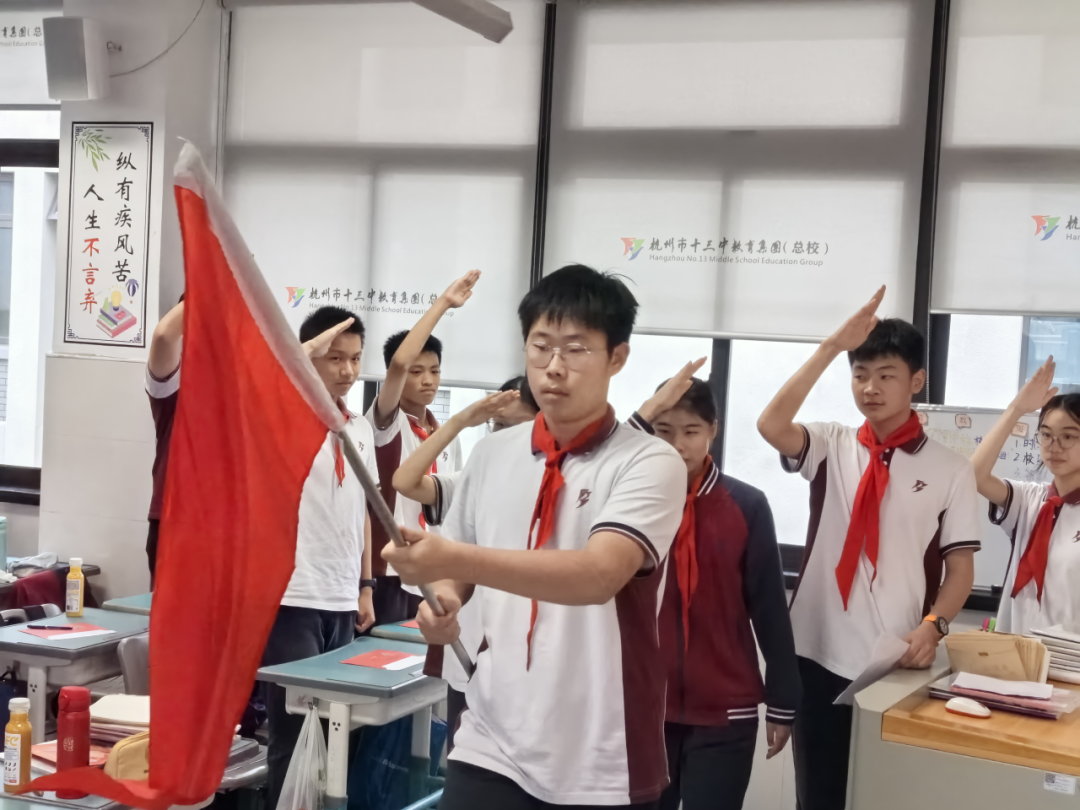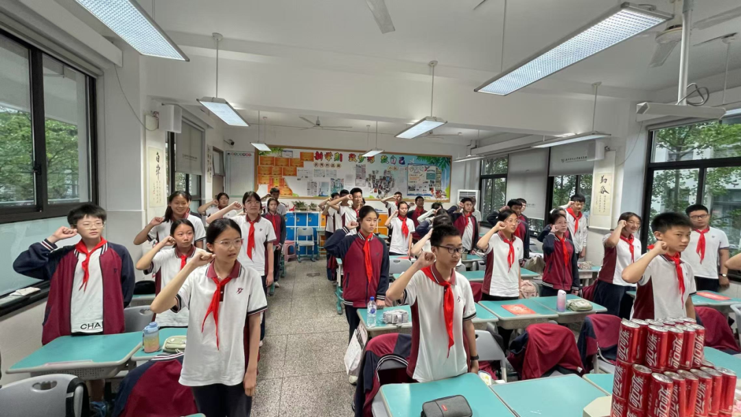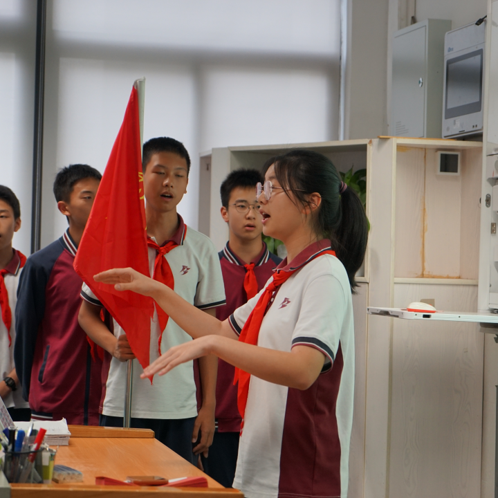 队旗归位,嘹亮的《中国少年先锋队队歌》响彻全场。“我们是共产主义接班人,继承革命先辈的光荣传统……” 全体队员齐声高歌,激昂的旋律仿佛点燃了大家心中的火焰,歌声里满是对少先队的深厚热爱与眷恋。