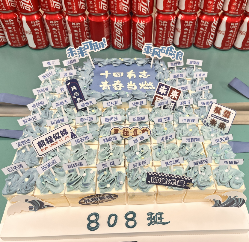 活动进入尾声,班级准备了甜蜜的蛋糕庆祝他们的成长,也为他们庆祝14岁集体生日。队员们与老师围坐在一起,共同分享这份甜蜜。大家品尝着美味的蛋糕,脸上洋溢着笑容,相互交流着活动中的感受与收获。欢声笑语在场地中回荡,轻松愉快的氛围为此次离队仪式画上了圆满的句号。