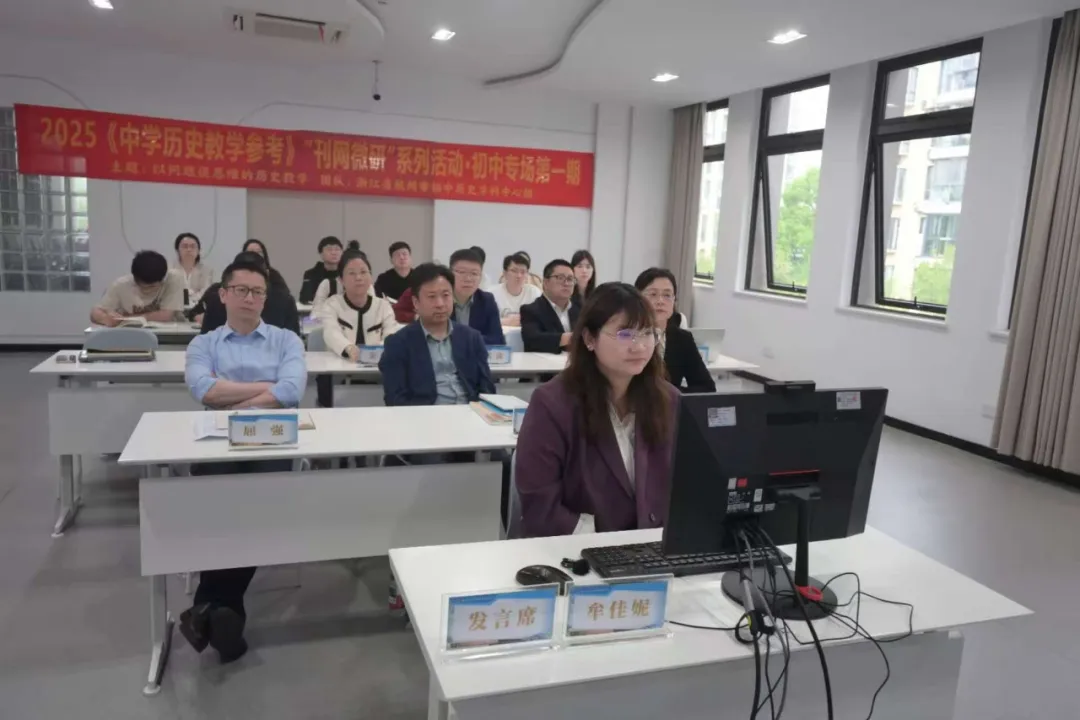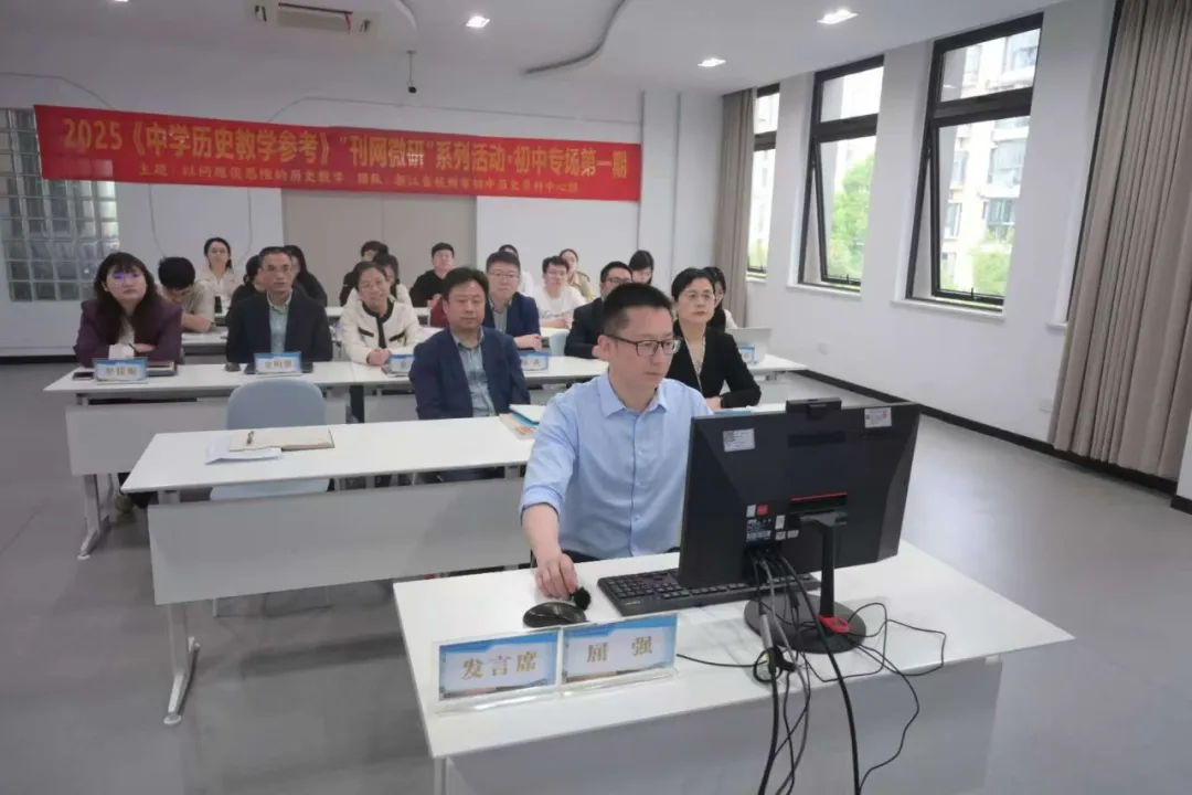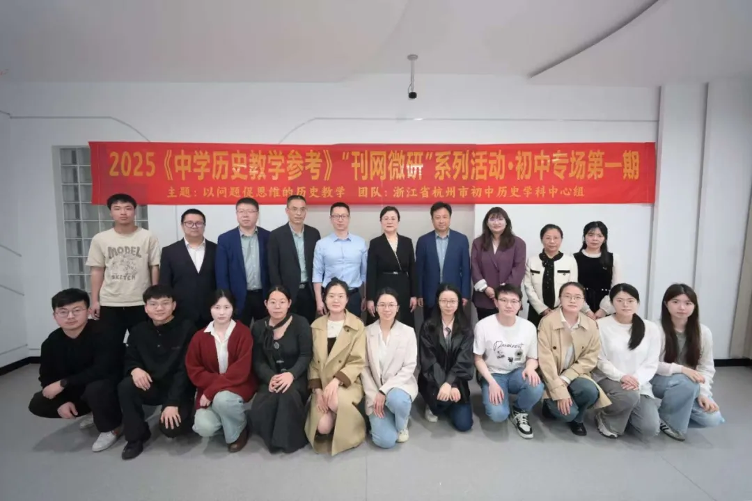 为进一步落实历史课程新课标育人理念,浙江省杭州市初中历史学科中心组在本校举行了以“以问题促思维”为主题的初中历史教学专题研讨活动。该活动以线上线下联动的方式展开,设置课例展示、专家评课、专题报告、互动答疑四大版块,精彩的课堂和深入的研讨吸引了全国历史教学同仁们的关注。