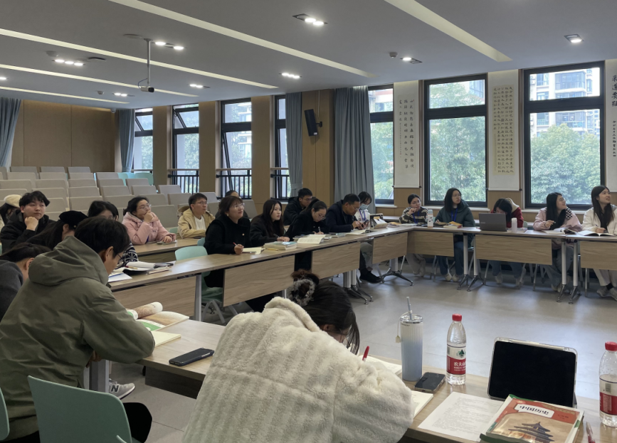 在活动中,先由吴施燕、金焕、陈扬帆三位参赛教师进行说课,全体教研组成员点评并提出具体可行的优化建议。在此基础上,教研组还根据教师的学科背景进行分组讨论。这种全员卷入式研修,不仅助力参赛教师打磨出精品课堂,更推动教研组形成“共研共进”的教研文化,实现团队教学能力的整体跃升。