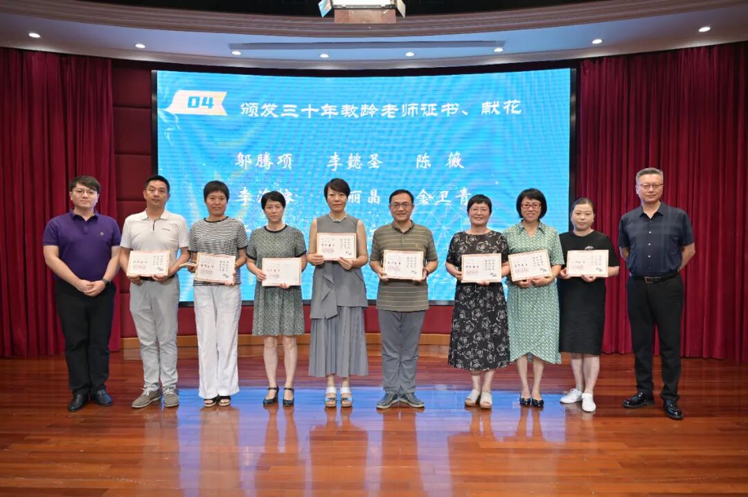 一辈子从事深爱的职业,那是深深地眷恋,三尺讲台、三十年,他们值得拥有这份光荣!一起来看三十年教龄的老师们。魏校长、刘书记给他们颁发证书,小苹果们献上鲜花。