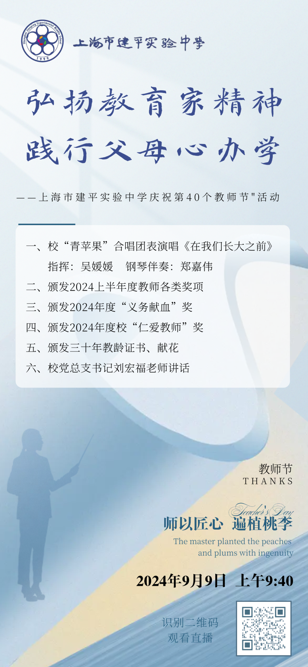 清晨,美丽的建平实验园像康乃馨一般温馨,一朵花、一声问候、一展微笑,教师节就是如此的平凡而又充满仪式感。