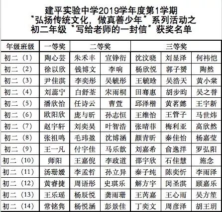 附:初二年级“写给老师一封信”获奖名单
