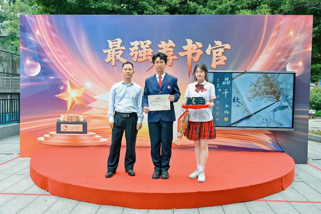 经过班级推荐、校级海选,最终8位阅读达人站上了决赛舞台。来自高一(12)班的李宗釜同学以对图书《千秋人物》的独到见解征服全场,他深入剖析历史人物命运与时代洪流的关系,既有少年意气又不失思想深度,最终摘得首届“最强荐书官”称号。
