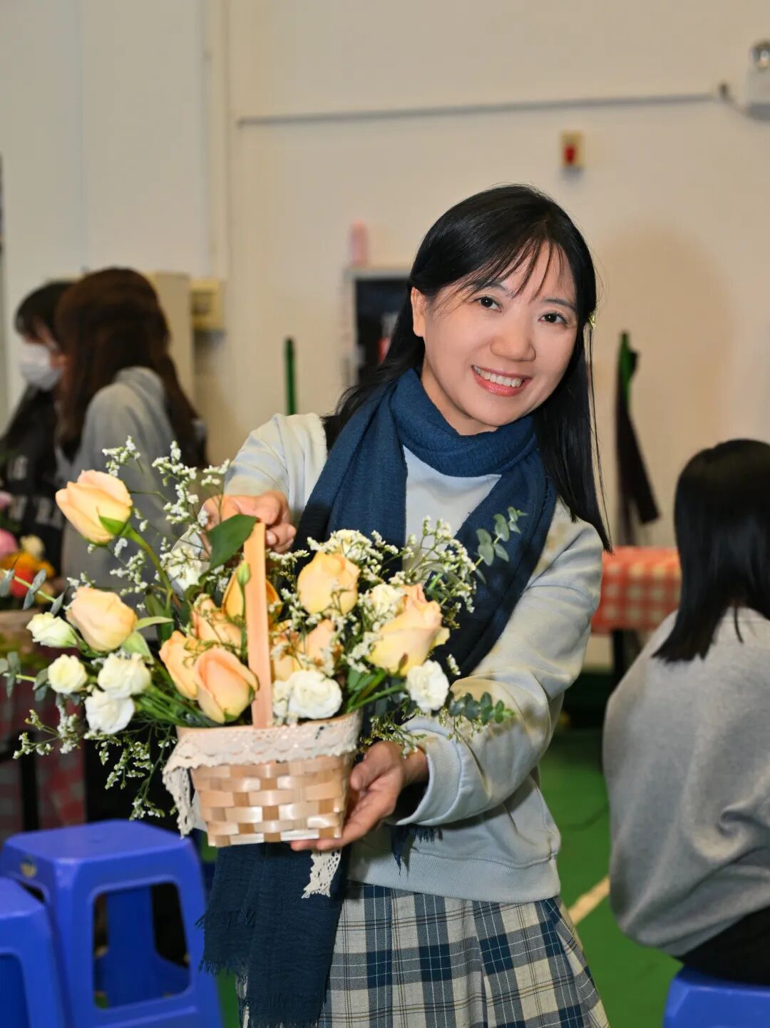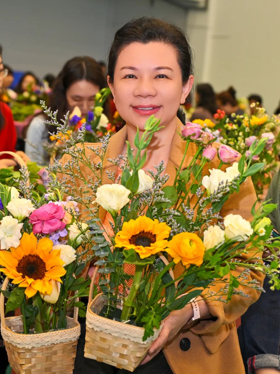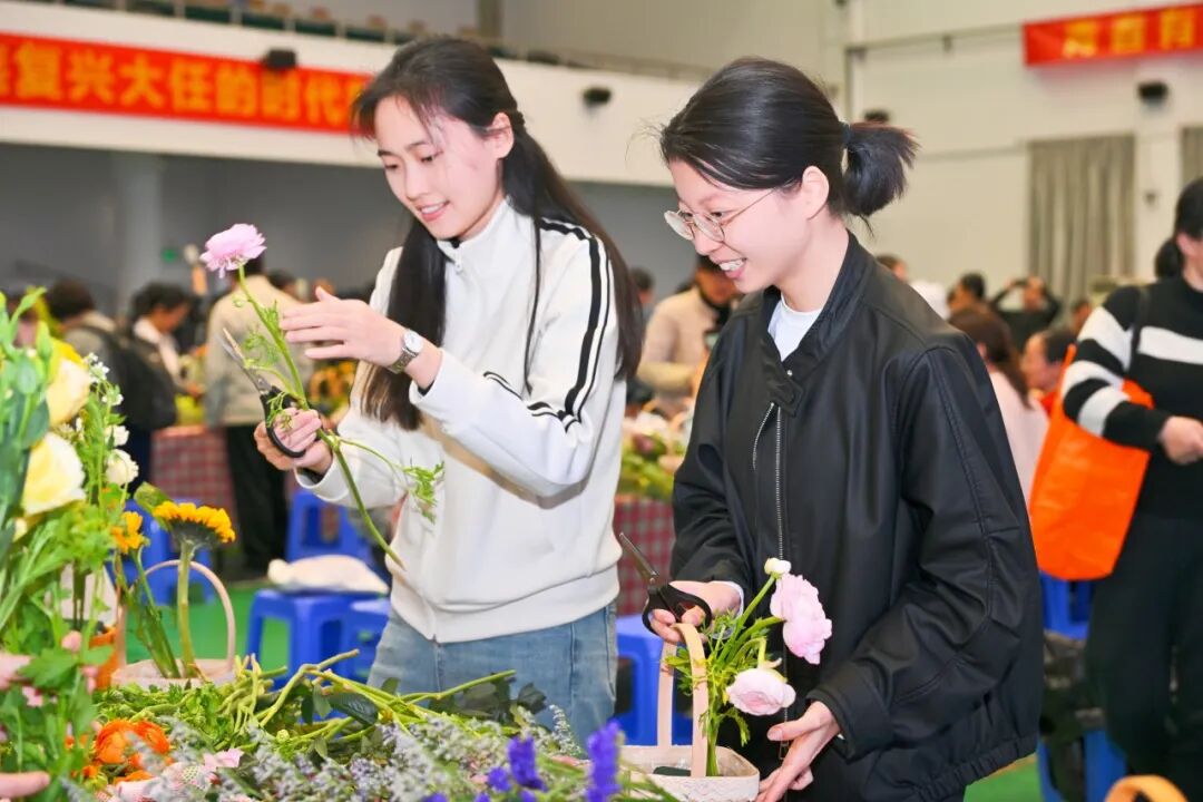 插花赛场,顷刻化作艺术殿堂!广州市中学生劳动技术学校副校长姚卫珍亲授插花秘笈,老师们巧手翻飞,玫瑰与康乃馨共舞,创意与协作齐飞。