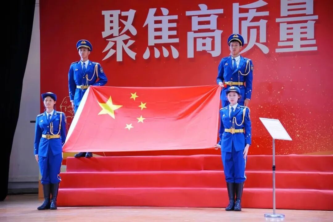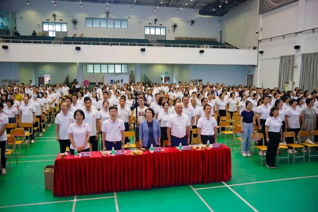 新入职教师向2023年度退休教职工、满三十年教龄(工龄)教职工献花。