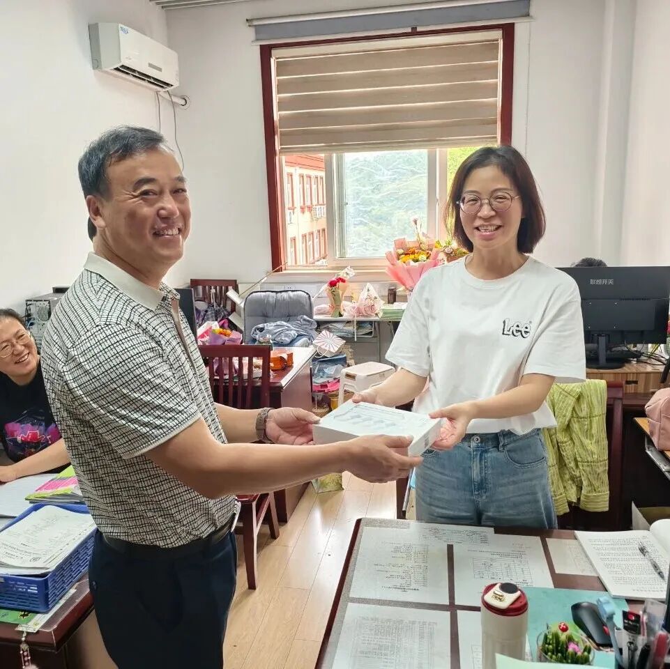 与此同时,大队委员们手捧工会精心准备的小多肉盆栽,面带微笑,将这份充满生机与希望的礼物送到每一位教师手中。那小小的多肉,宛如教师们培育的幼苗,象征着教育的希望与传承。此外,校领导还深入各个办公室,为老师们送上节日惊喜,一句句温暖的问候、一份份贴心的礼物,传递着学校对教师们的深切关怀。