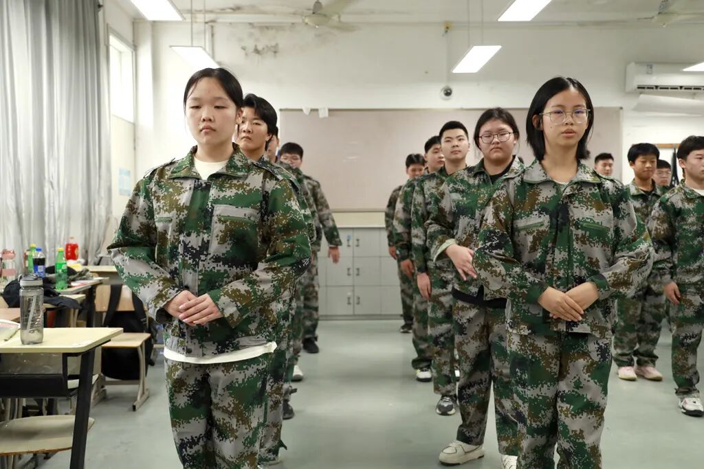 清晨的训练场上,每一次转身都利落坚定,每一次踏步都整齐有力。汗水与坚持交织,勾勒出成长的轮廓。随后,嘹亮的军歌响彻云霄,同学们军姿挺拔、放声高歌。从细调音准到凝聚气势,铿锵旋律伴着昂扬热血回荡在校园每一个角落,不仅强化了纪律意识,更点燃了青春的豪情。