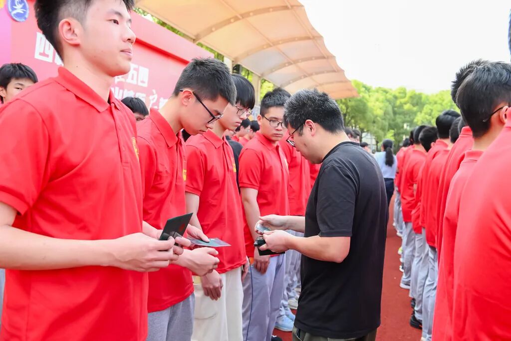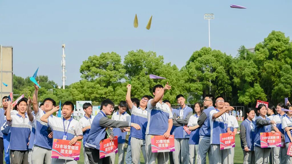 然后,活动进入了庄严而热烈的入团宣誓仪式环节。校团委委员、专业部领导、家长代表共同为125名新团员颁发了团员证和团章,接着青浦区教育局团工委书记王译老师带领全体新团员在团旗前进行入团宣誓:“我志愿加入中国共产主义青年团……”誓言字字千钧,纸飞机载着梦想飞向天空,寓意青年与时代同频共振。