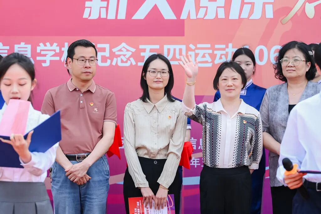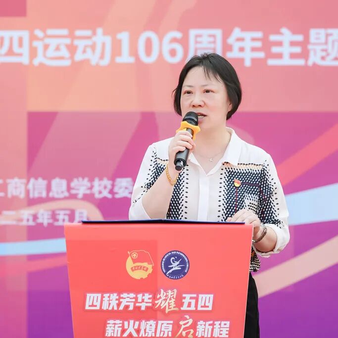 随后,校党总支书记毛燕老师为大家带来寄语。她指出,传承五四精神要读懂“信仰”二字的分量,必须发挥团员青年的先锋带头作用。学校党总支将全力支持共青团工作,坚持做到强化机制保障、强化资源整合、强化思想引领。她向团员青年提出殷切期望:“要从百年团史中汲取智慧,做知其厚重的传承者;在人工智能、绿色发展中勇闯‘无人区’,做‘敢破敢立’的开拓者。以信仰为旗,以奋斗为笔,共同书写我们这代人的青春诗篇。”