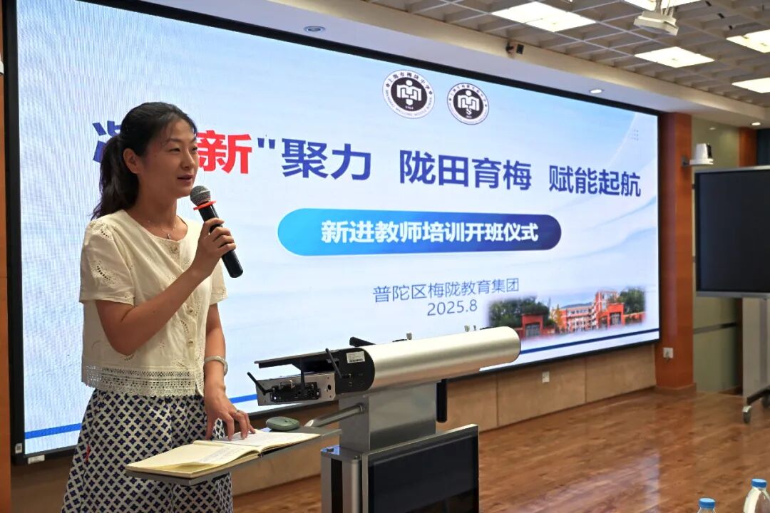 梅陇实验校长都莹进行了开班致辞。都校长勉励全体新入职教师,迅速完成角色转变,将个人发展融入集团发展的大局,传承梅陇人“精益求精、追求卓越”的基因,用行动书写属于自己的教育篇章。