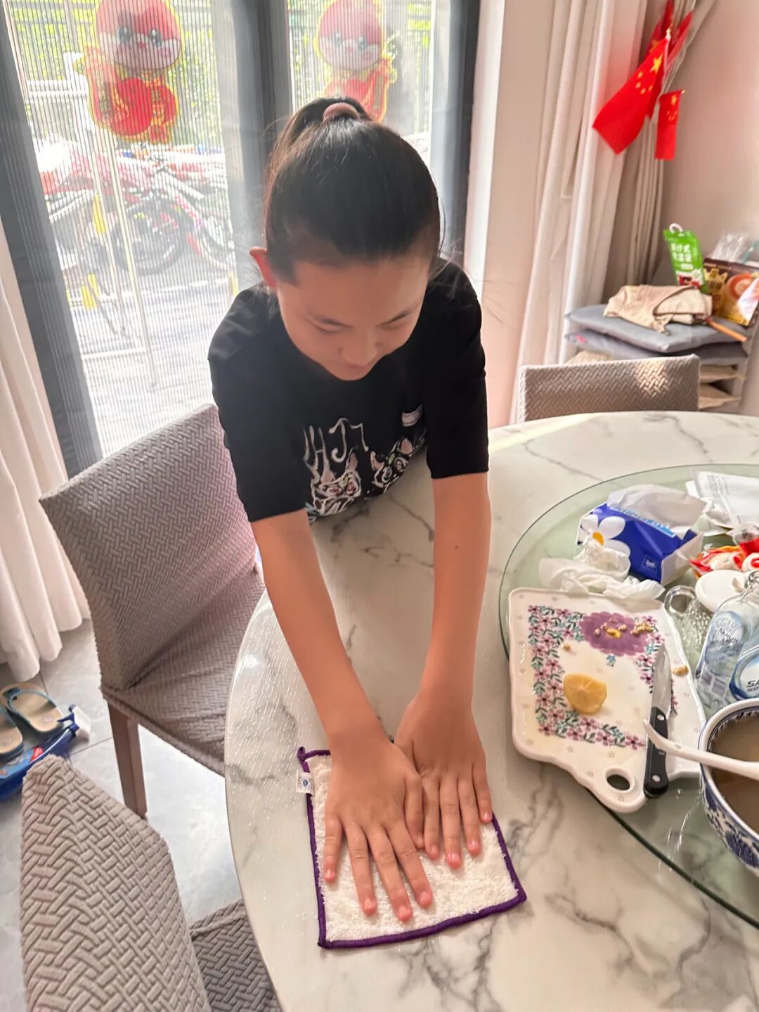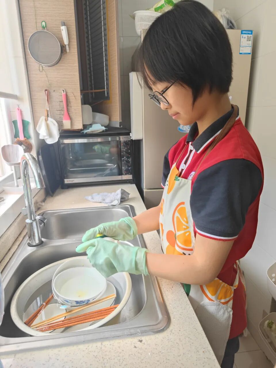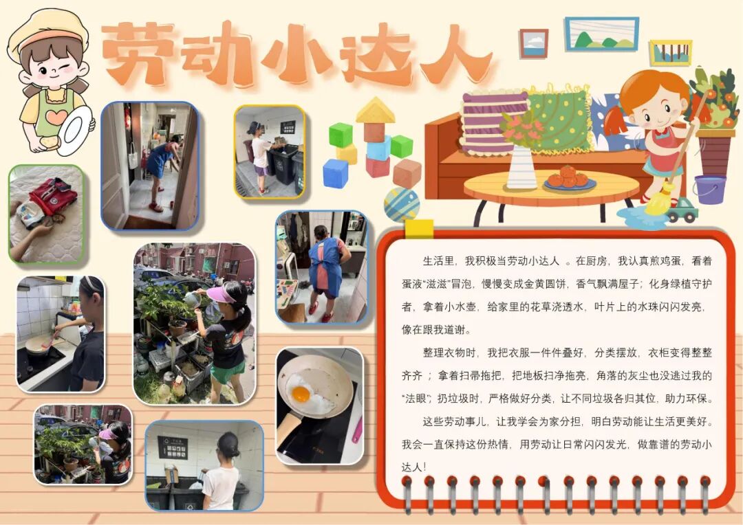 假期里,同学们纷纷撸起袖子,积极投身到家务劳动中。不论是拖地、洗碗、整理房间,还是洗衣服、擦拭家具,甚至修理损坏的物品,都干得井井有条。从蒙着灰尘的书桌到窗明几净的房间,从乱糟糟的角落到整齐排列的书架…… 每一次弯腰擦拭、每一次分类整理,都是同学们施展给家 “焕新” 的魔法。当汗水换来一片洁净,那扑面而来的清新,便是劳动馈赠的 “清爽之乐”。