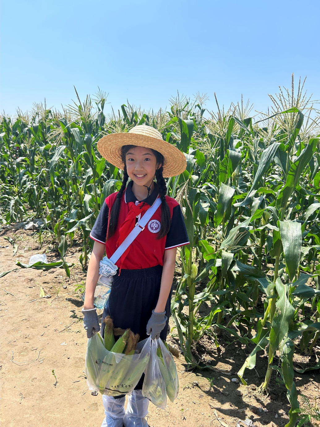 这次劳动之旅,让我们真真切切感受到了劳动的辛苦和收获的快乐。哪怕汗流浃背,我们也咬着牙坚持;当捧着满满一袋玉米往回走时,大家的脸上都笑开了花,原来这就是“丰收”的感觉啊。这次的体验真的非常特别且难忘。