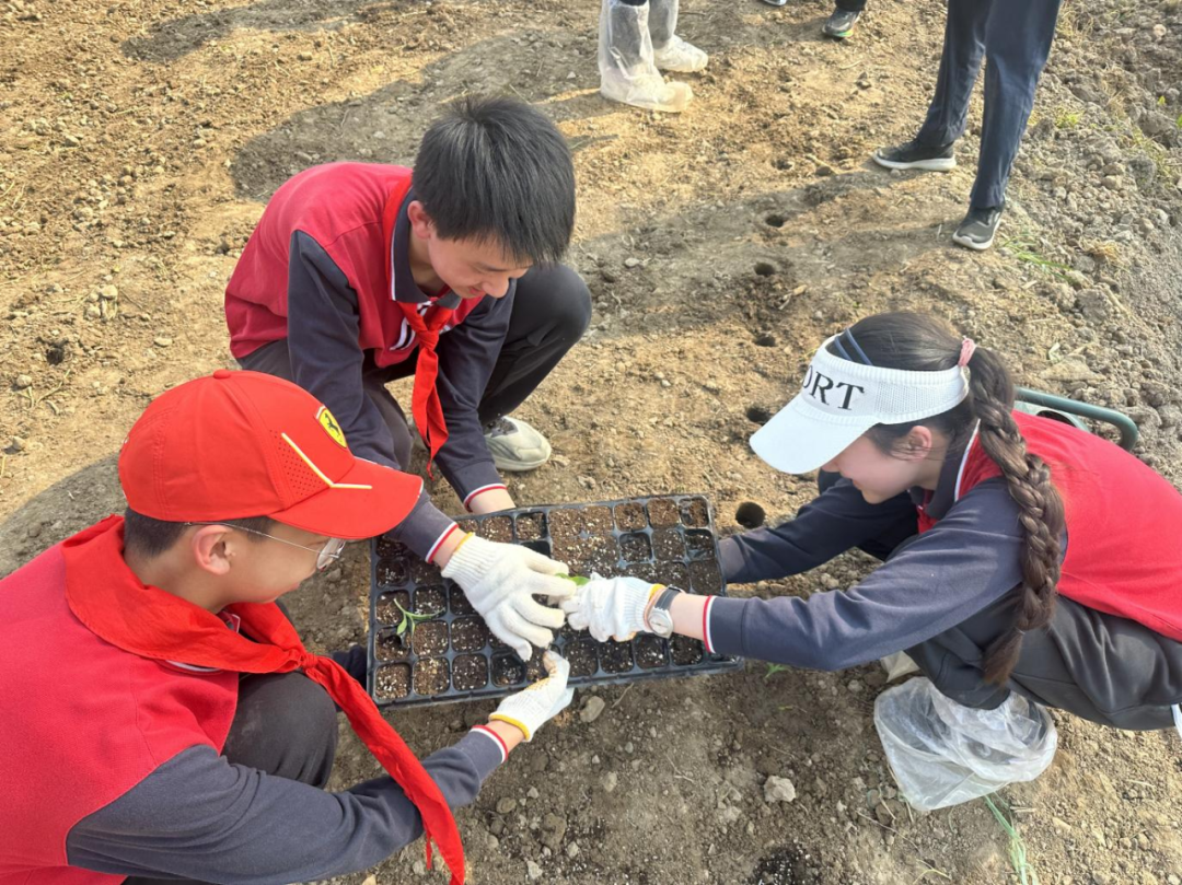 今年3月,八年级学生踩着春泥踏入花博邨,在农技人员指导下,完整参与了玉米种植的全过程:翻土、播种、覆土、浇水。通过亲身实践,同学们不仅掌握了基本农事技能,更理解了"粒粒皆辛苦"的深刻含义。