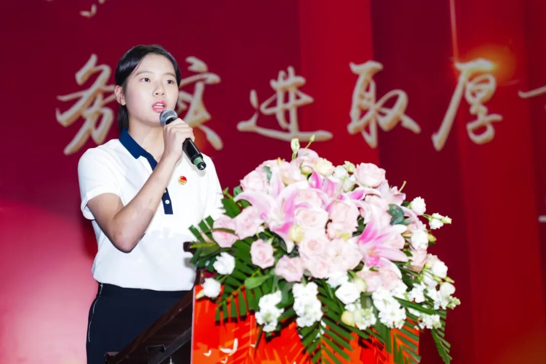 来自九12中队的柯语晨作为学生代表发言。她深情回顾了四年初中时光,在赛场上拼搏、在实践中成长,从青涩走向成熟,学会担当。她感谢老师们倾囊相授、严慈相济,“用知识点亮未来,用耐心包容叛逆”;也珍视与同学们同甘共苦的情谊,愿与大家友谊长存,顶峰相见。
