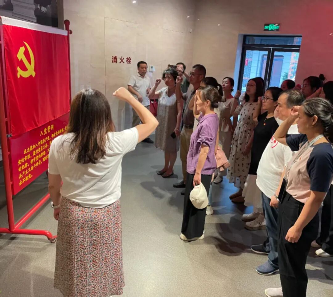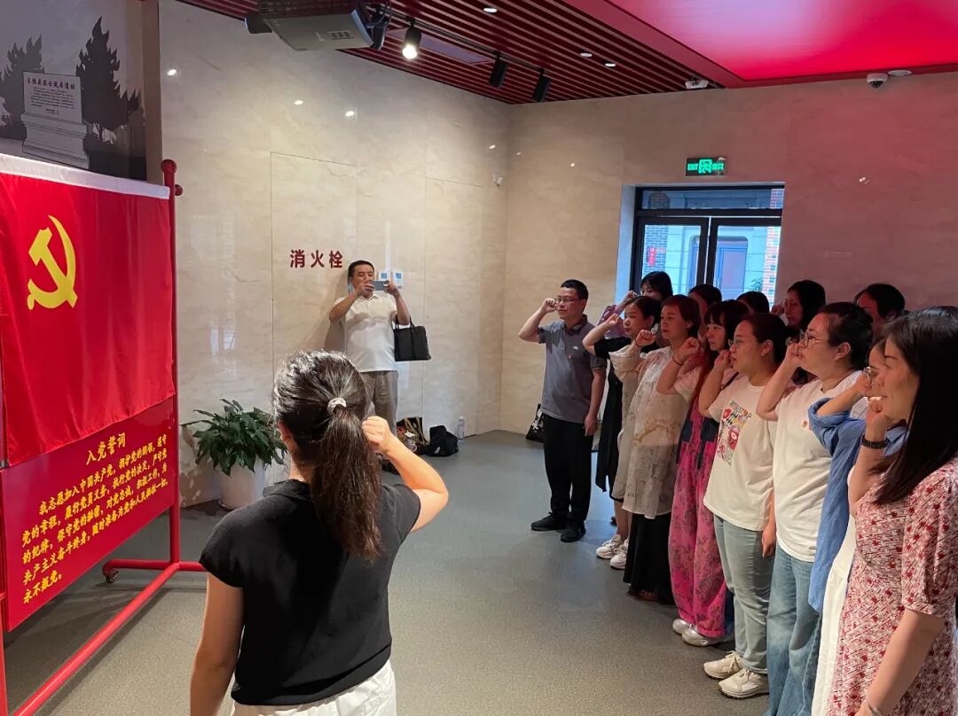 在国歌精神的感召下,全体党员在展馆内庄严肃立,各支部面对鲜红的党旗,高举右拳,字字铿锵地重温了入党誓词。“我志愿加入中国共产党……”的誓言再次回响,表达了党员们为党的教育事业奋斗终身、永葆政治本色的坚定信念。