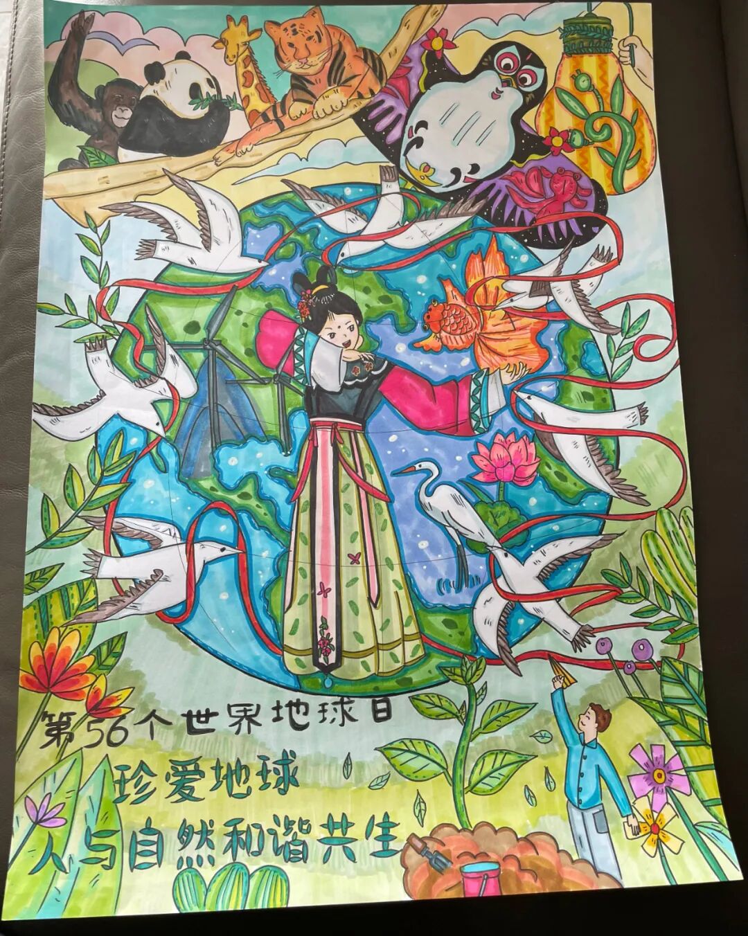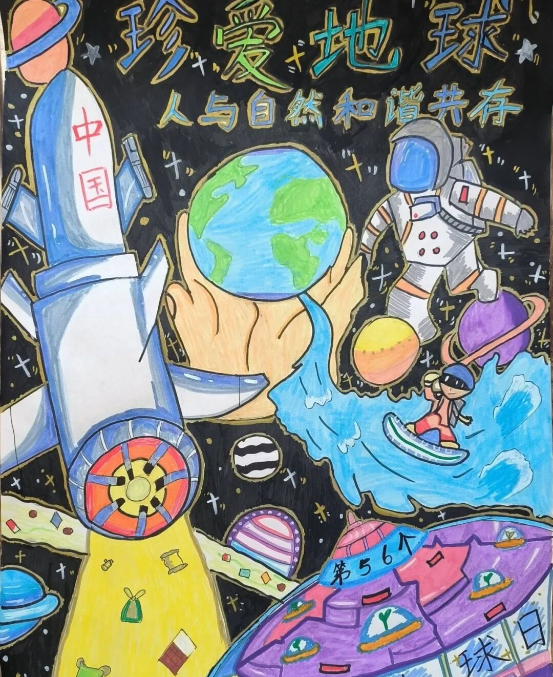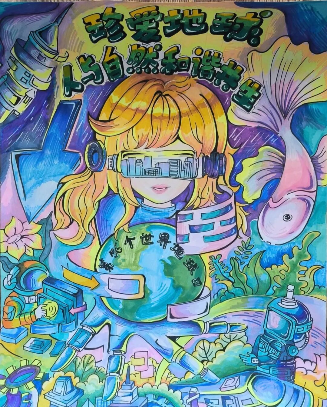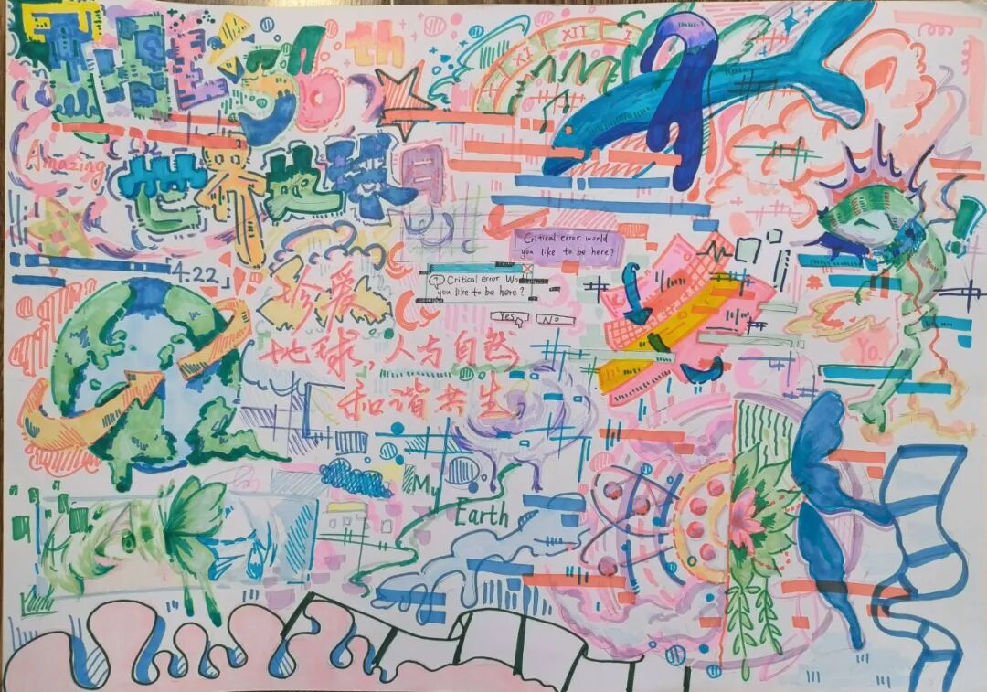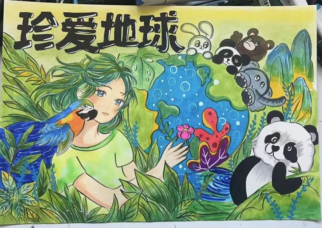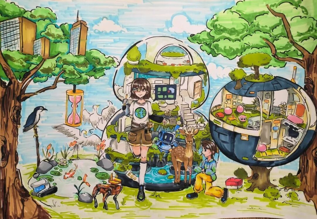 围绕“珍爱地球”主题,六、七年级学生们绘制充满创意的科幻画,展现对未来世界的美好愿景。