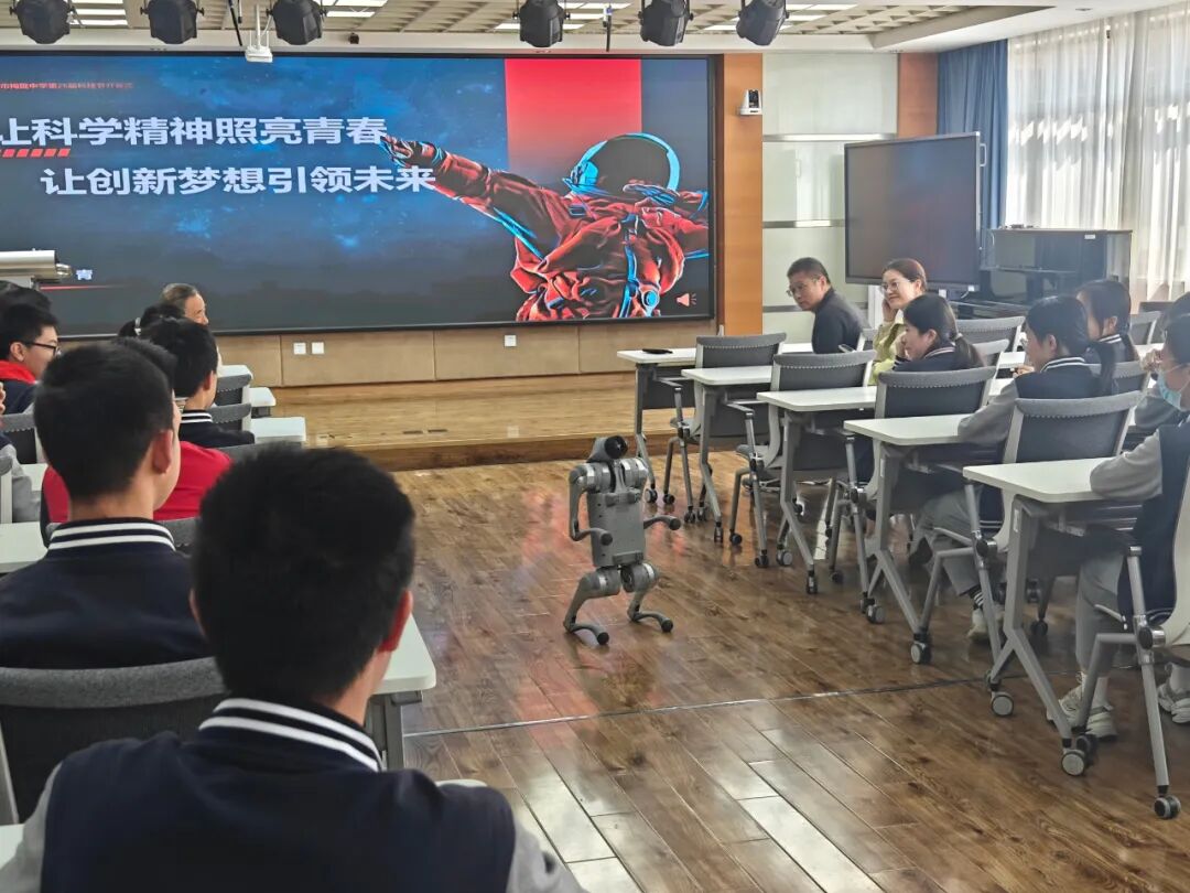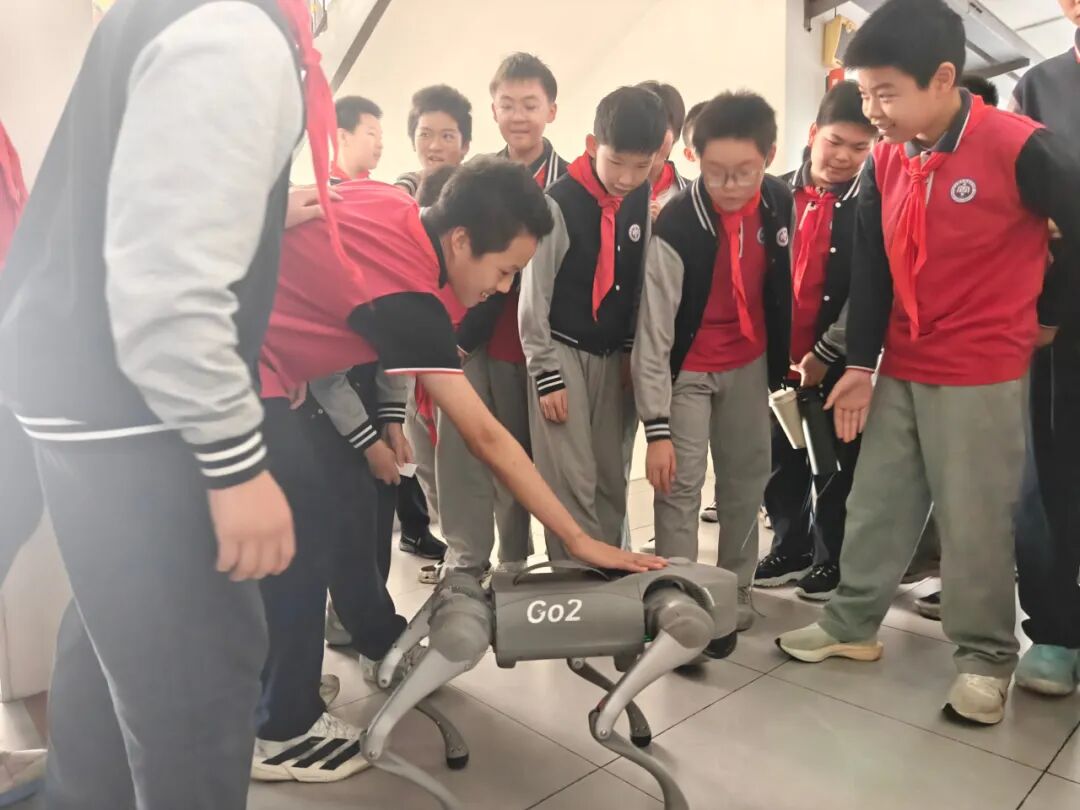 袁书记还邀请宇树机器人的技术人员,携公司最新一代机器狗登场表演,后空翻、越障、行云流水的舞步,彰显人工智能与机械工程的精妙融合。学生们触手可及体验前沿科技,近距离感受科技的震撼力量。