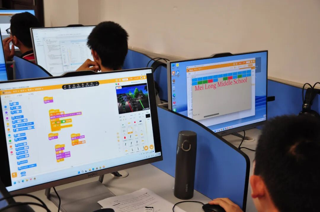 编程不是呆板的条条框框,同时也是创造快乐的源泉。学生们利用人工智能助力图形化编程软件和代码式编程语言,设计出了富有趣味性和创新性的互动游戏。