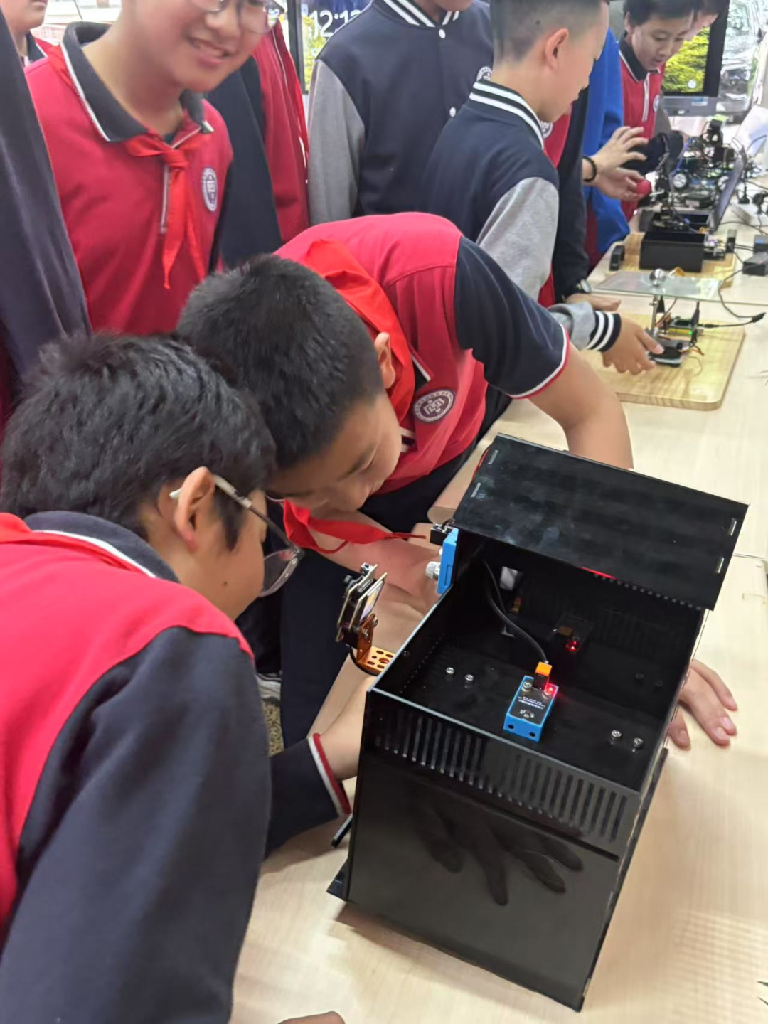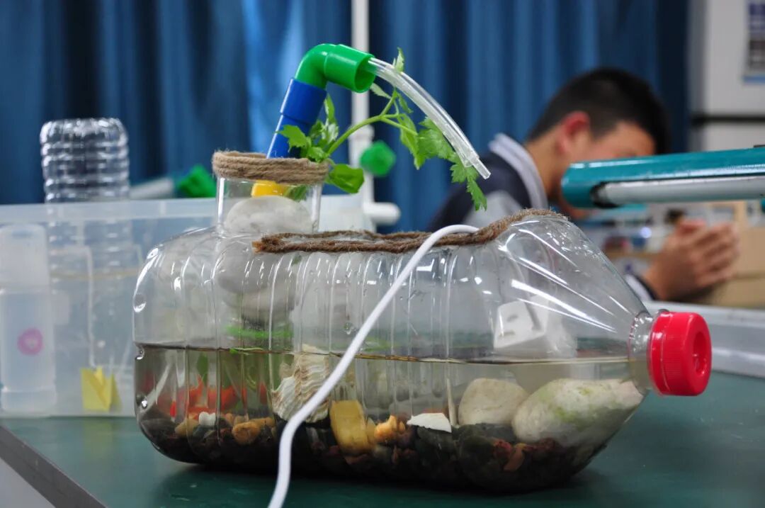 学生们利用了废弃材料设计并制作了智能动植物饲养盒,具备了自动浇水、温湿度监测等智能功能,让我们看到了科技与生活的完美结合。