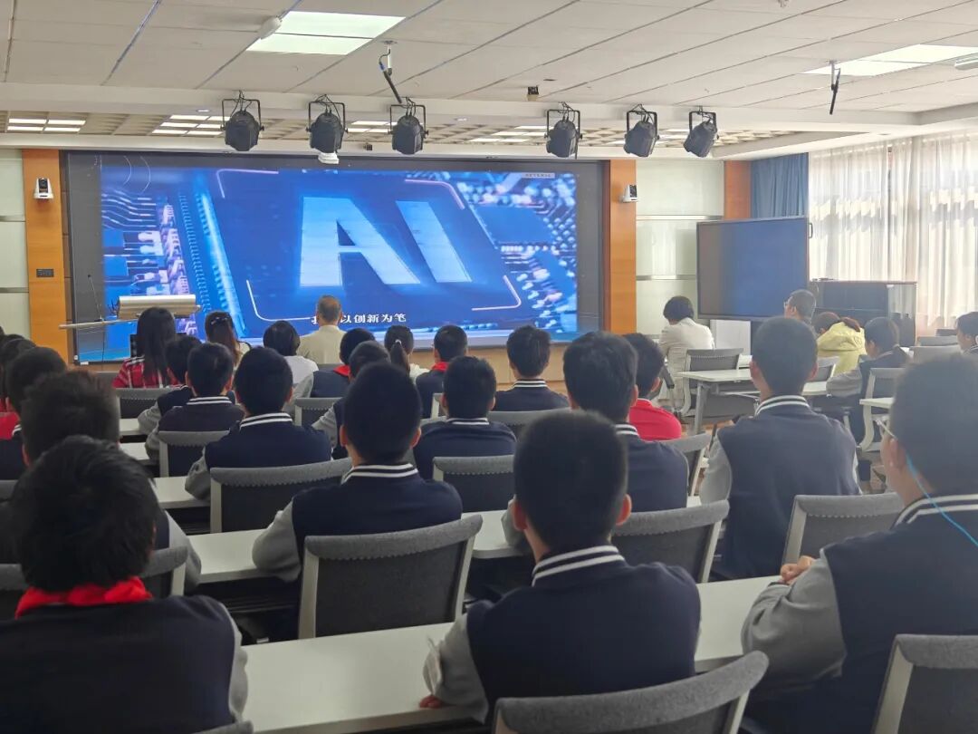 校园内全新打造的人工智能实验室正在积极推进“AI慧‘ZHI’”课程。学校邀请课程合作方上海电器科学研究院,为八九年级学生特别打造了一场AI装置现场展示和互动体验,展现前沿人工智能发展。