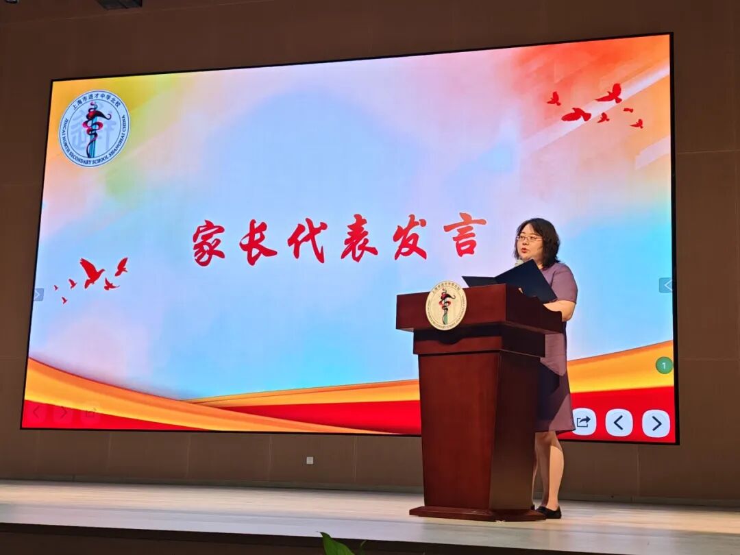 李琴女士与孔品屏女士作为家长代表发言,向进才北校全体教师的辛勤付出致以诚挚感谢,鼓励全体同学在新学期勇于尝试,不断超越自我;踏实向学,在探索中绽放青春光彩;携手共进,于协作中汇聚成长力量。