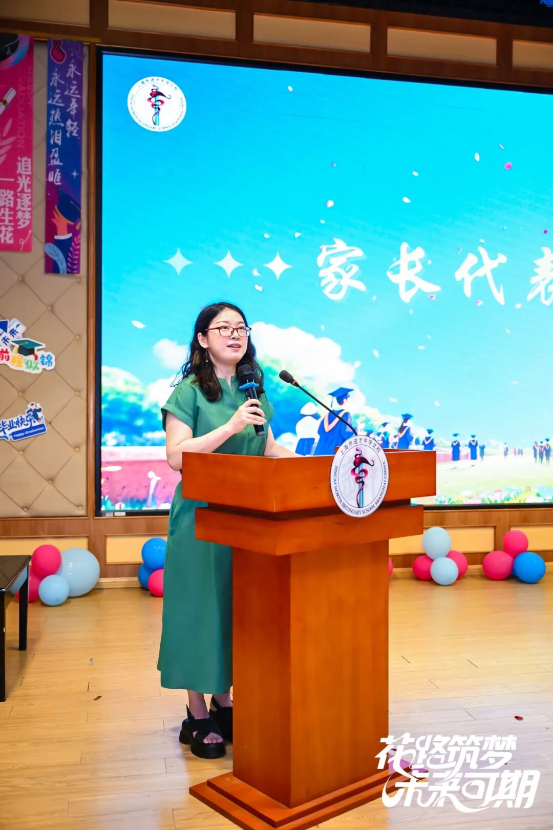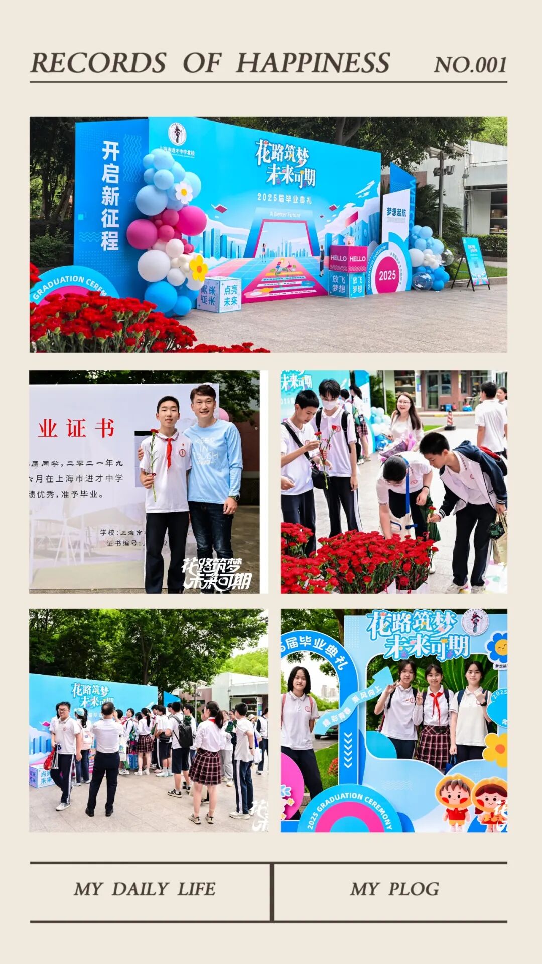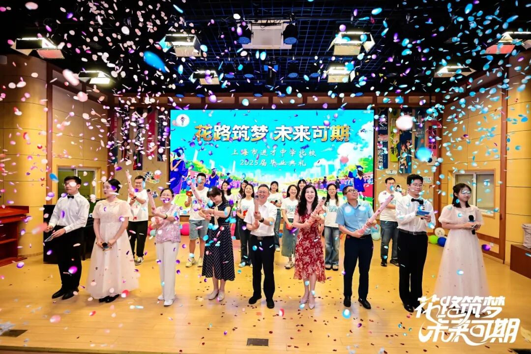 2025年6月19日下午,初三年级全体师生与家长代表齐聚一堂,共同见证一场盛大又温情的青春告别仪式——“花路筑梦·未来可期”进才北校2025届学生毕业典礼。