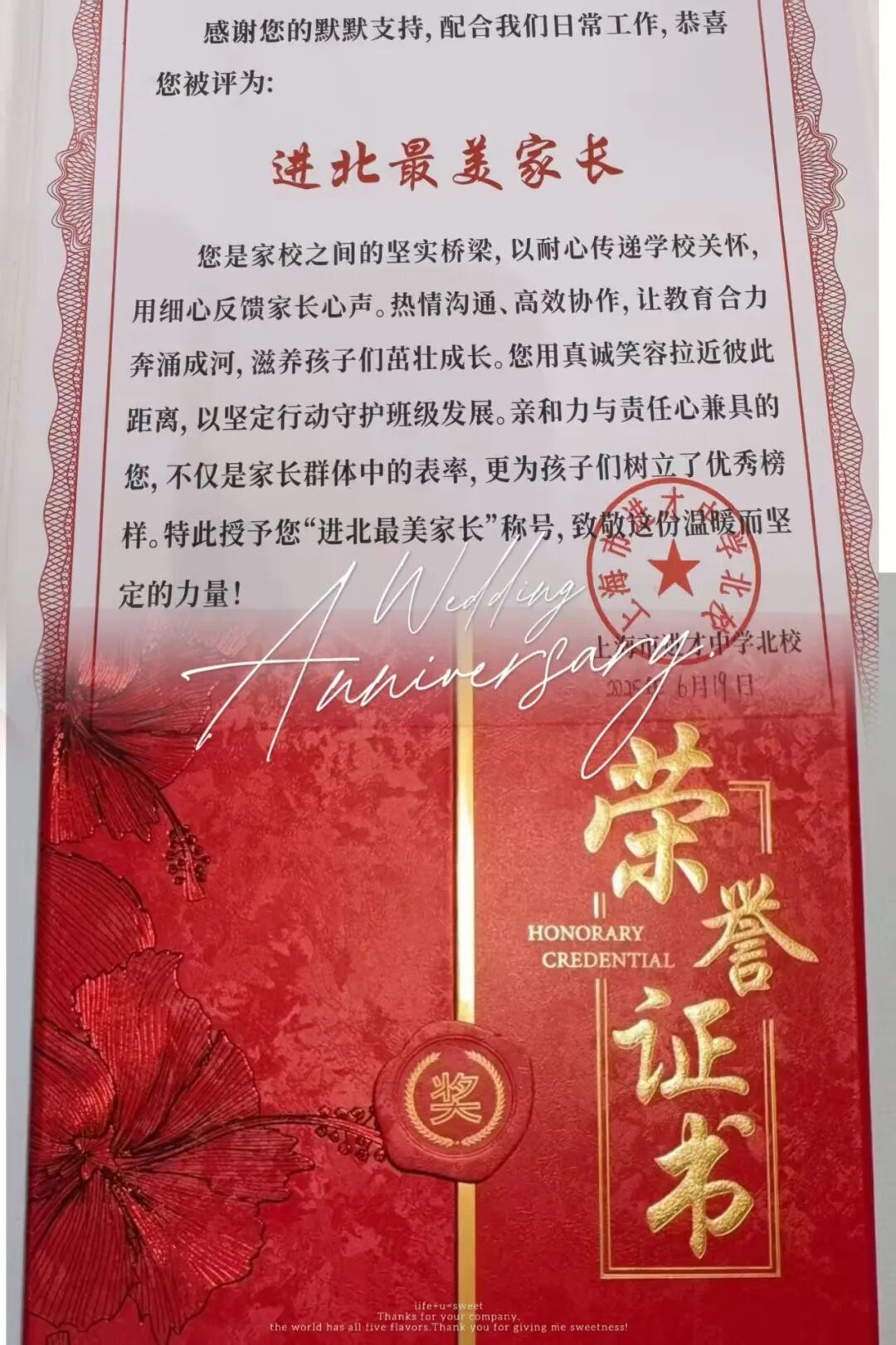 接着,为感谢四年来所有初三家长与学校同心同行,校领导吕飞副校长、陆奕霏副校长、罗辉副校长为家长代表颁发了“最美家长”证书及礼物。