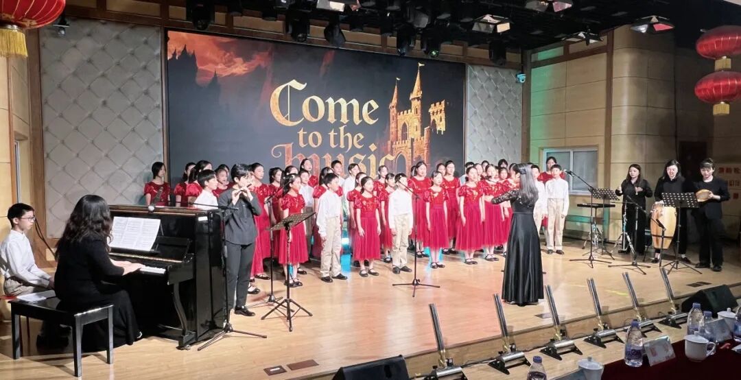 歌声轻扬,音符如微风掠过耳畔。青春的画卷随着校合唱团演唱的《小园》与《Come To The Music》徐徐展开。