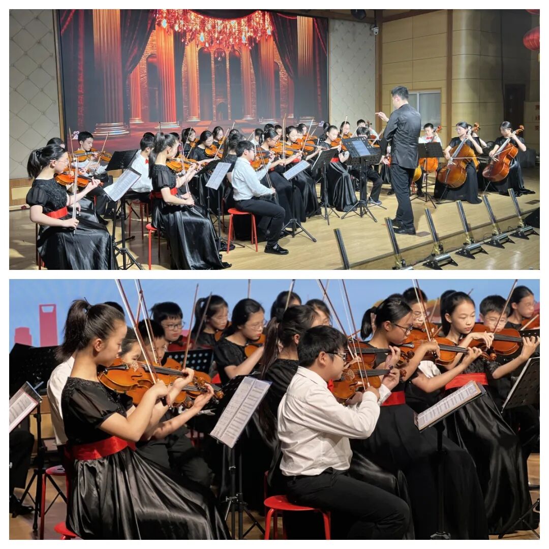 轻快明朗的《青春舞曲》拉开了六一庆典的序幕,校弦乐团的演奏让现场充满了蓬勃朝气。